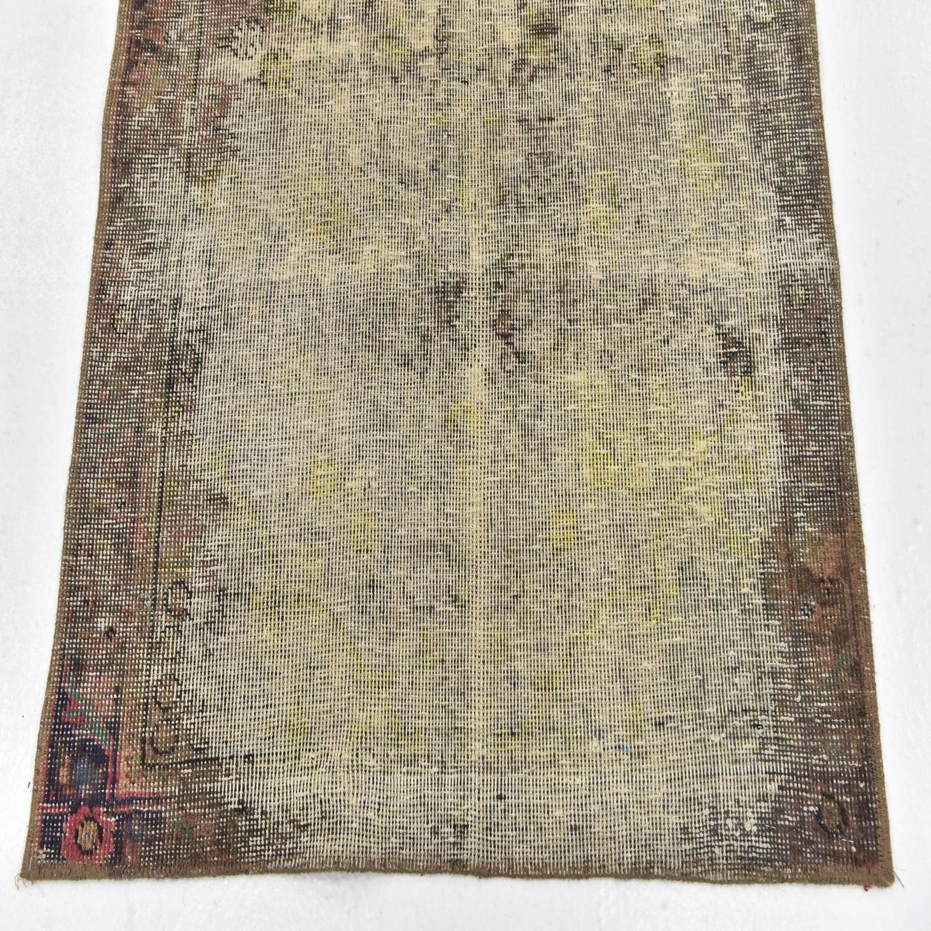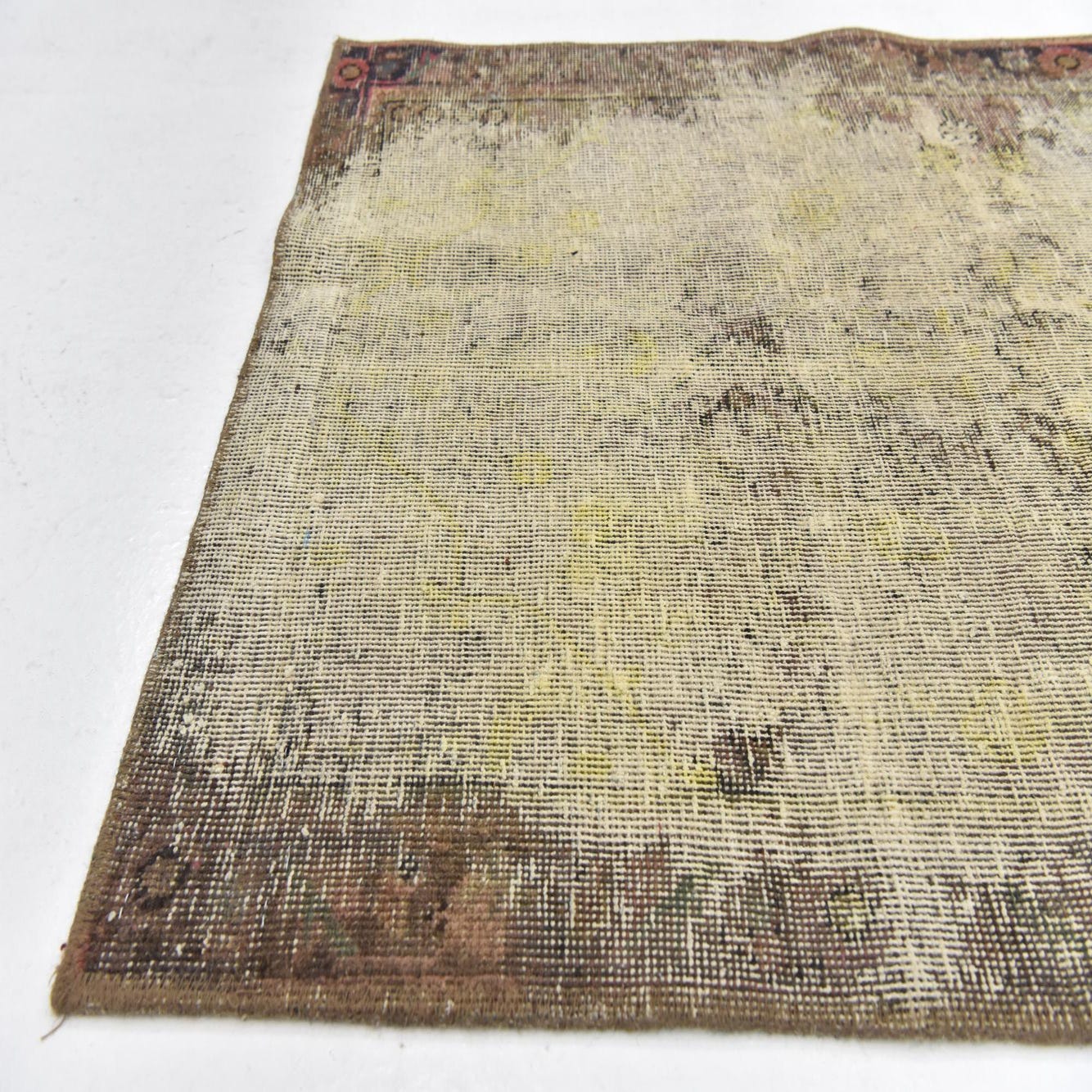 This Persian Ultra Vintage rug is an antique Persian Rug that has been washed, over-dyed, and then shaved down to a low pile. Look at the detail pictures to fully appreciate the uniqueness of this piece.