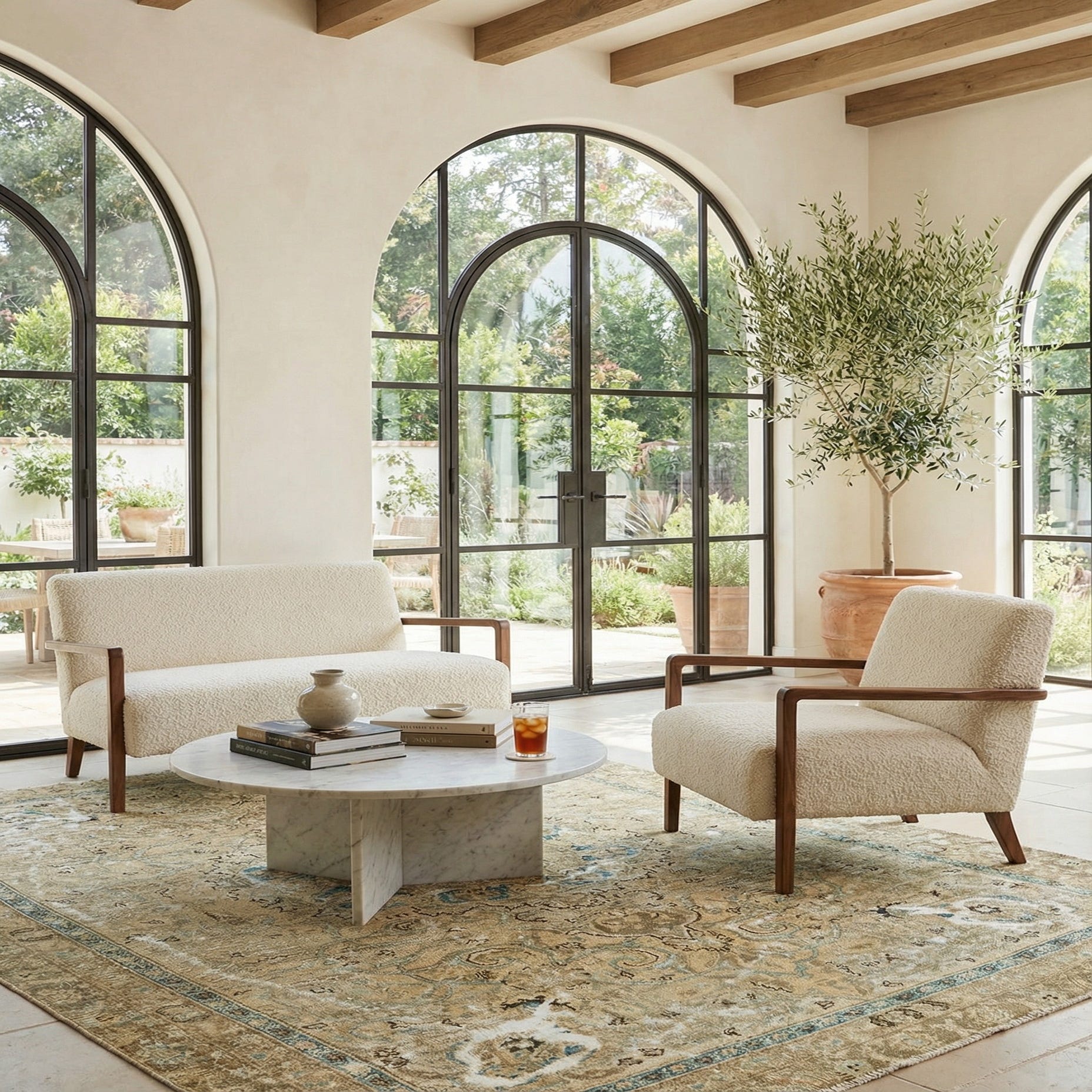 Primary color is Beige. Colors in this rug include: Beige, Cream, Blue.
