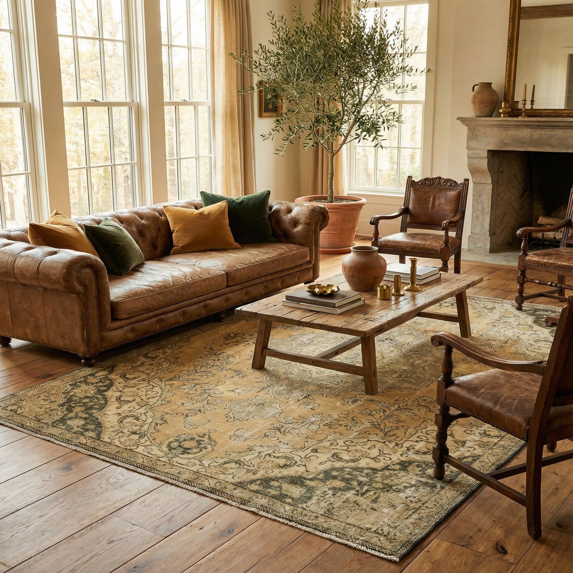 Primary color is Beige. Colors in this rug include: Beige, Baige, Brown, Green.