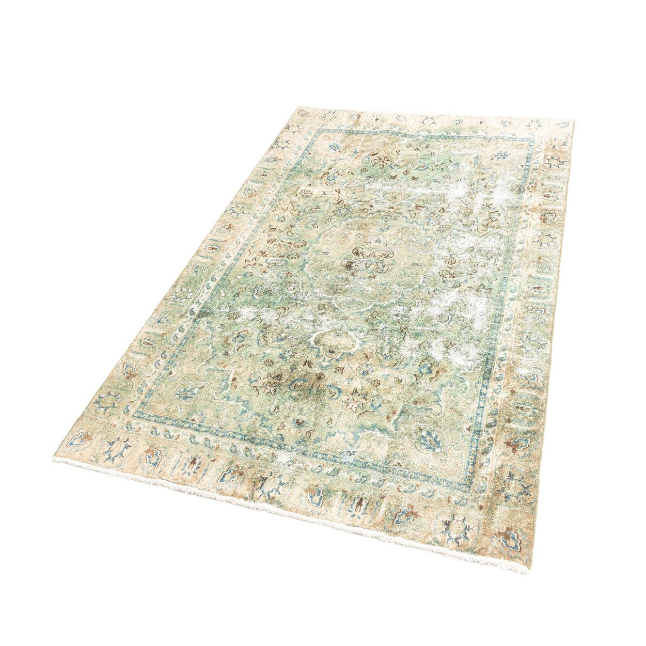 Primary color is Beige. Colors in this rug include: Beige, Green, Blue.