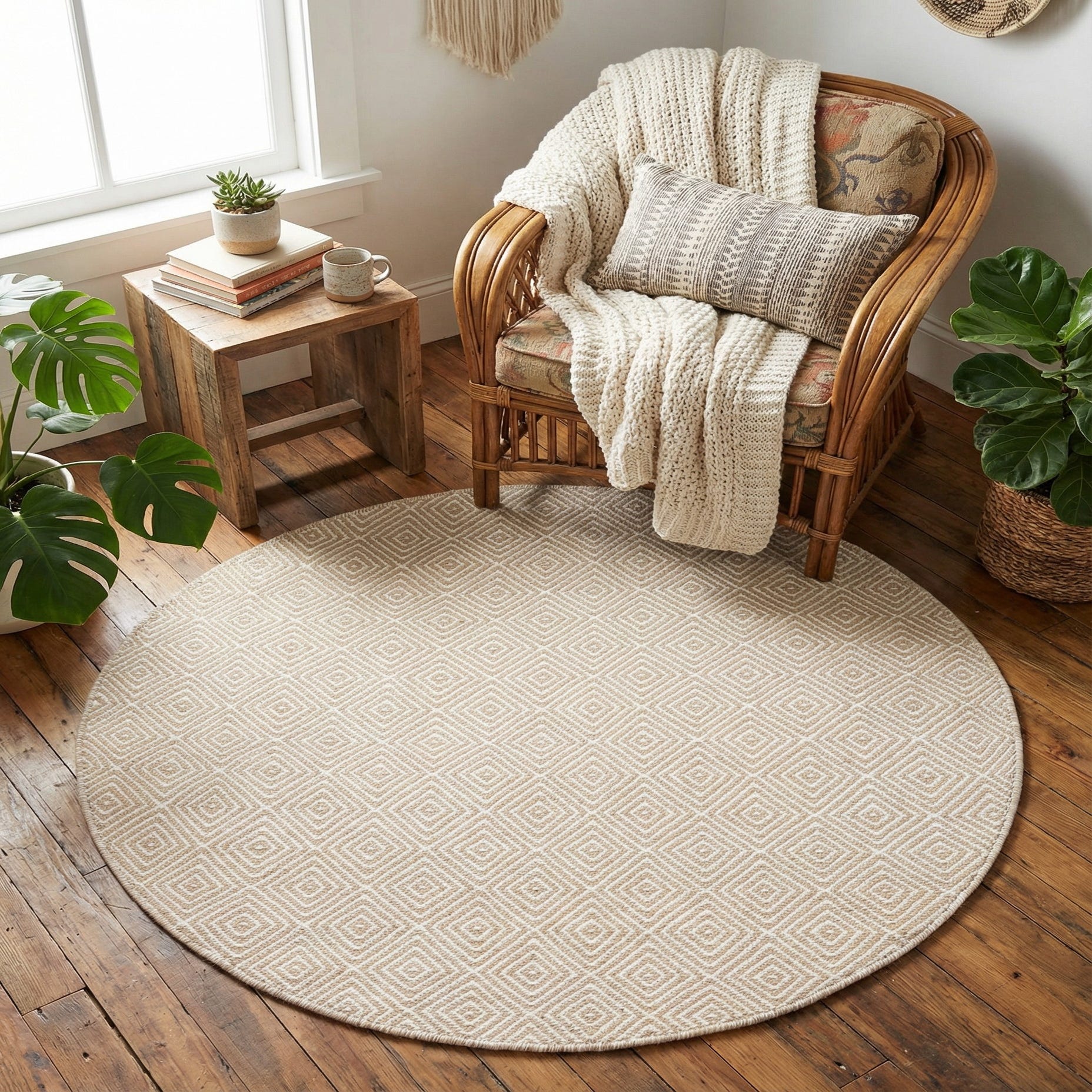 4' 1 x 4' 1 Hand Woven Geo Trellis Flatweave Round Rug