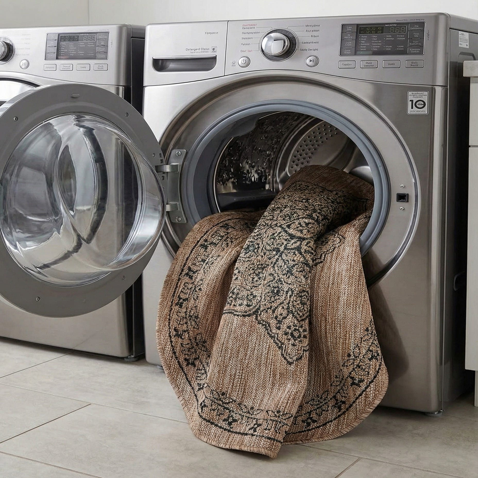 4' x 4' Washable Traditional Indoor / Outdoor Round Rug