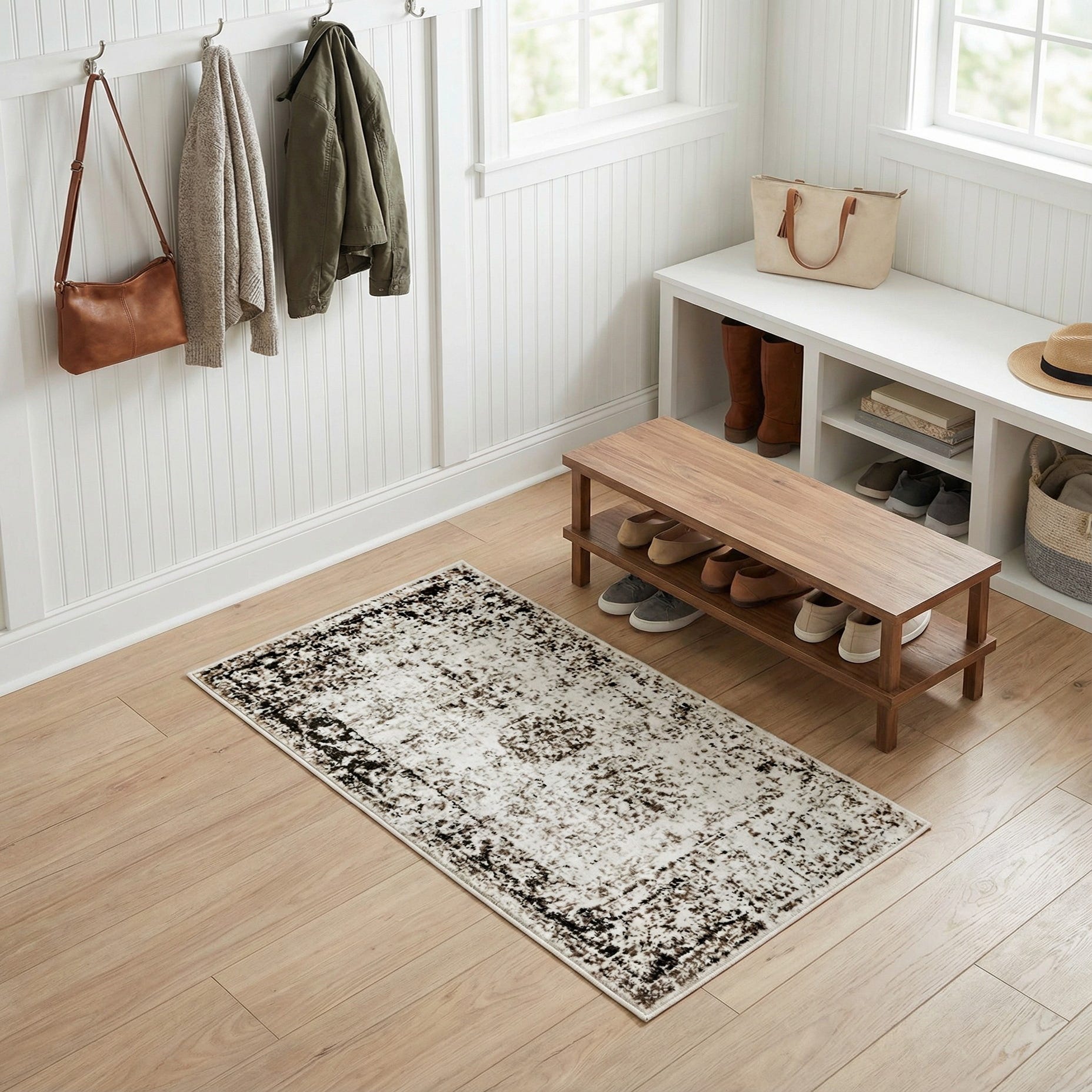 Primary color is Beige. Colors in this rug include: Beige, Brown, Tan.