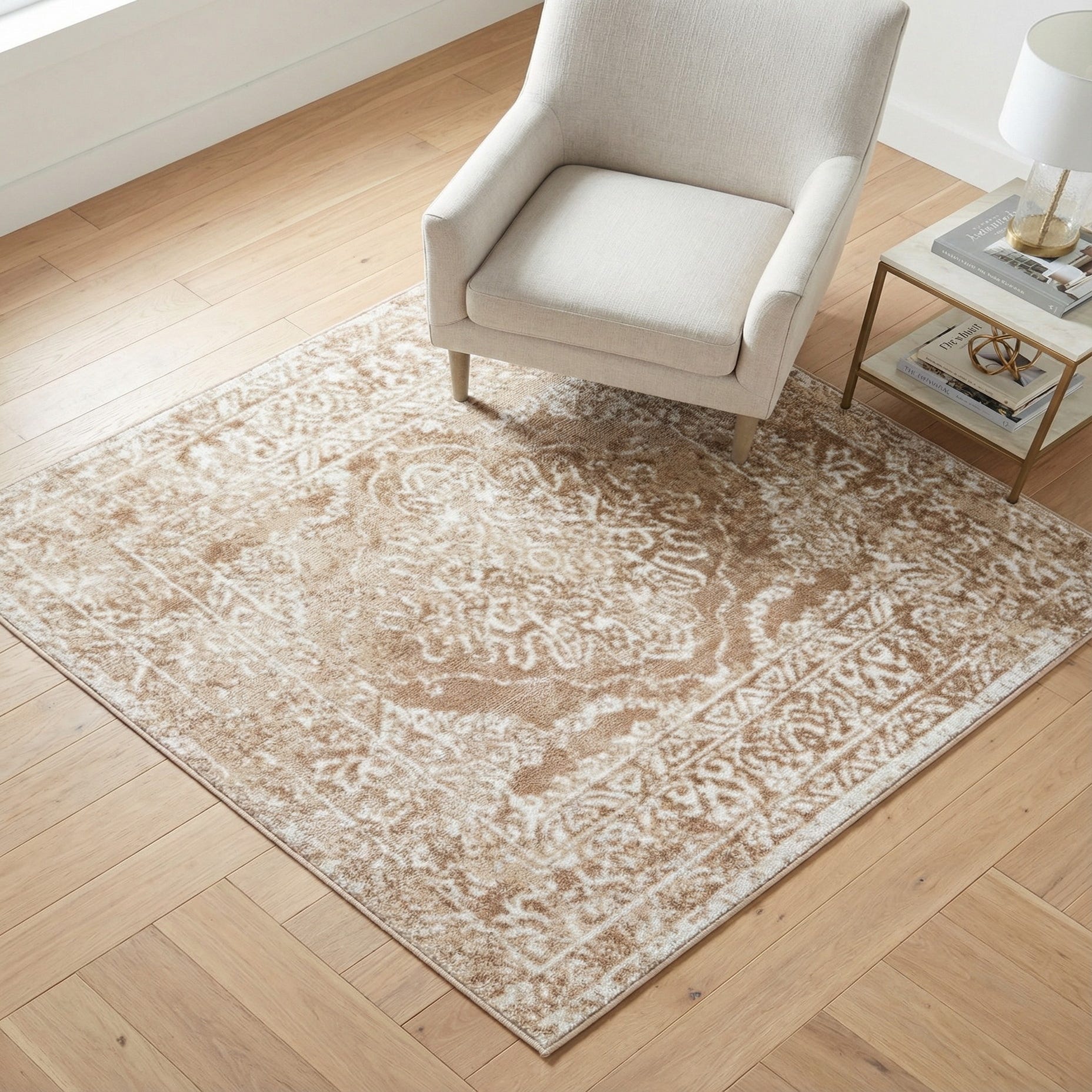 Primary color is Beige. Colors in this rug include: Beige, Ivory.