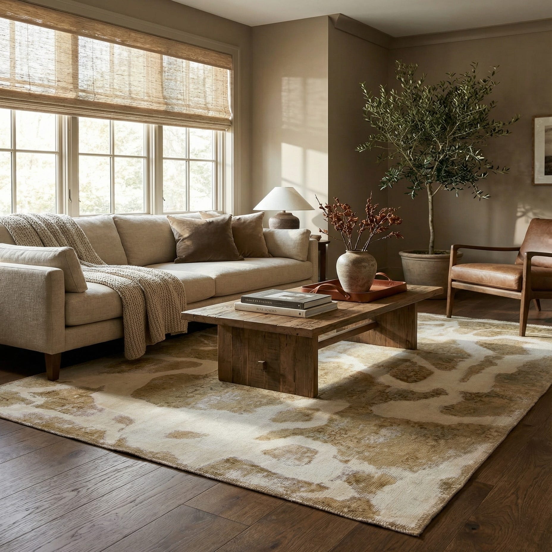 Primary color is Beige. Colors in this rug include: Beige, Ivory, Brown.
