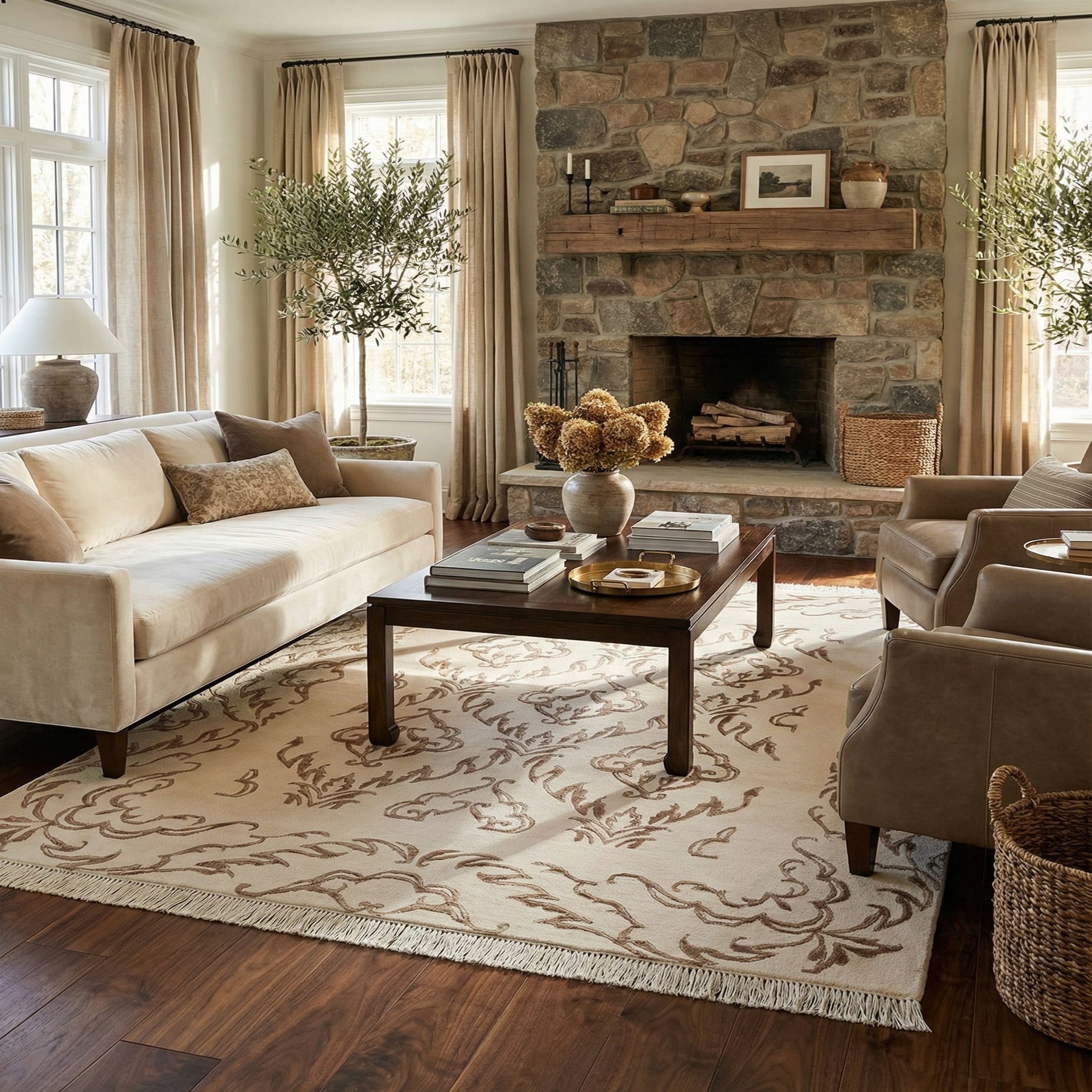 Primary color is Beige. Colors in this rug include: Beige, Brown, Light Brown.