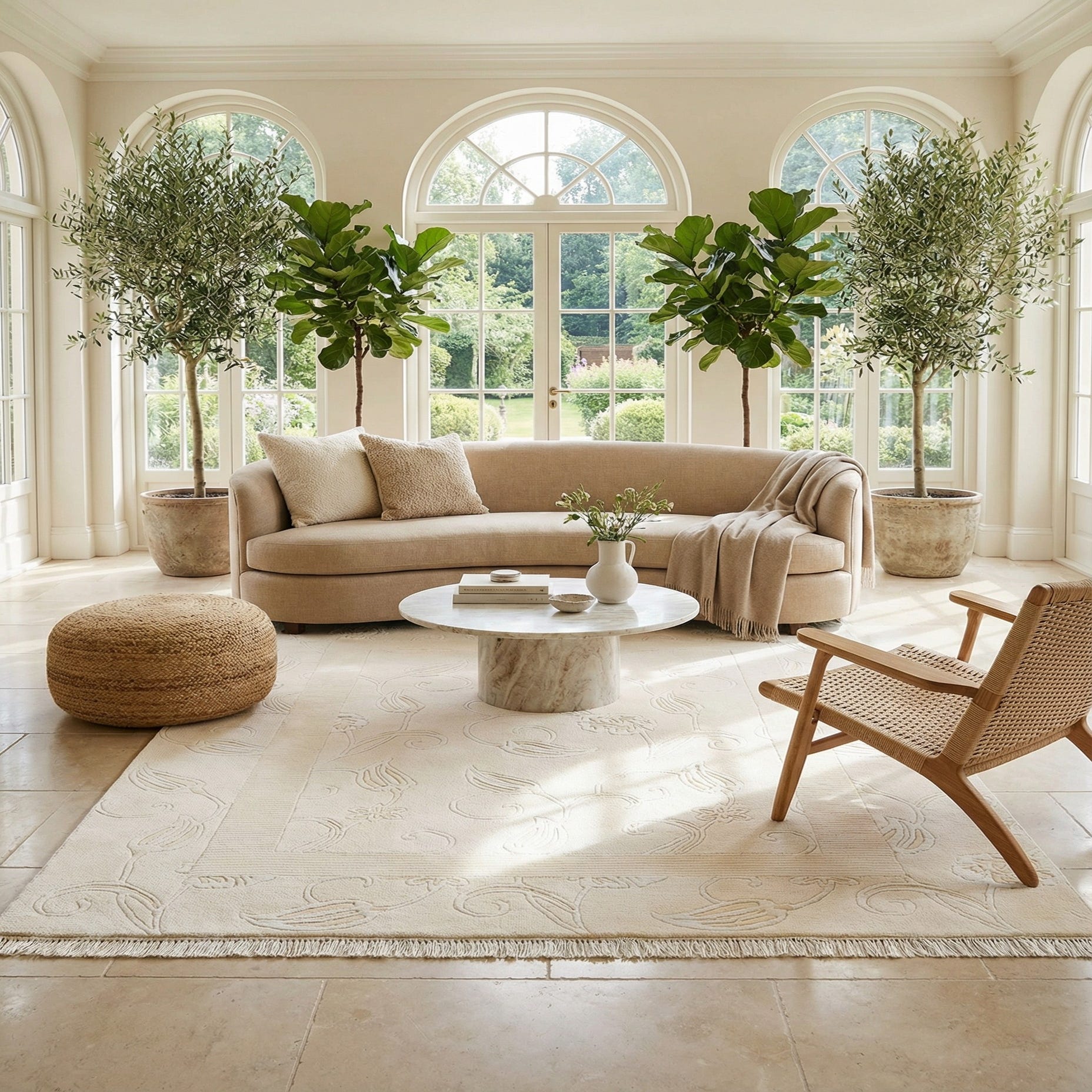 Primary color is Beige. Colors in this rug include: Beige, Ivory.