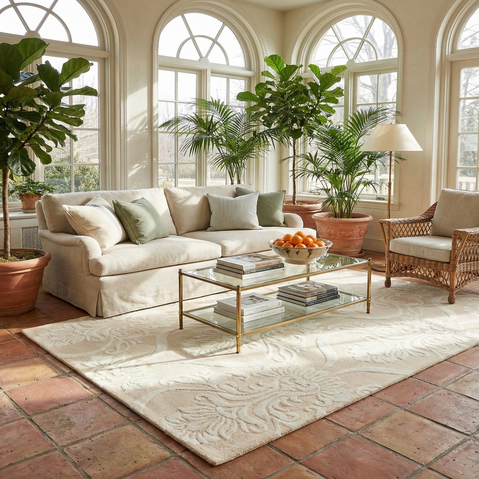 Primary color is Beige. Colors in this rug include: Beige, Ivory.