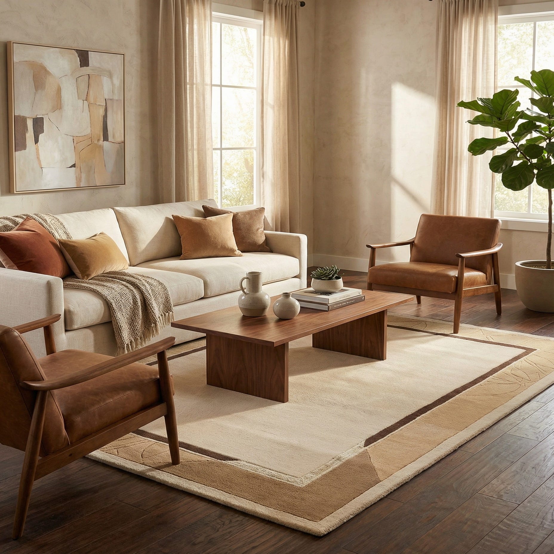 Primary color is Beige. Colors in this rug include: Beige, Brown, Ivory, Light Brown, Tan.