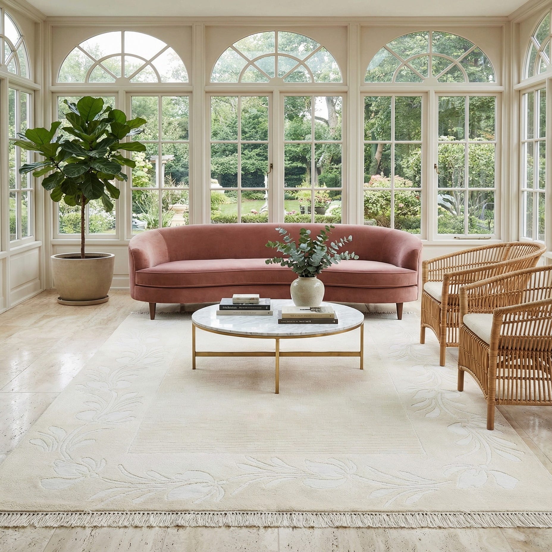 Primary color is Beige. Colors in this rug include: Beige, Ivory.