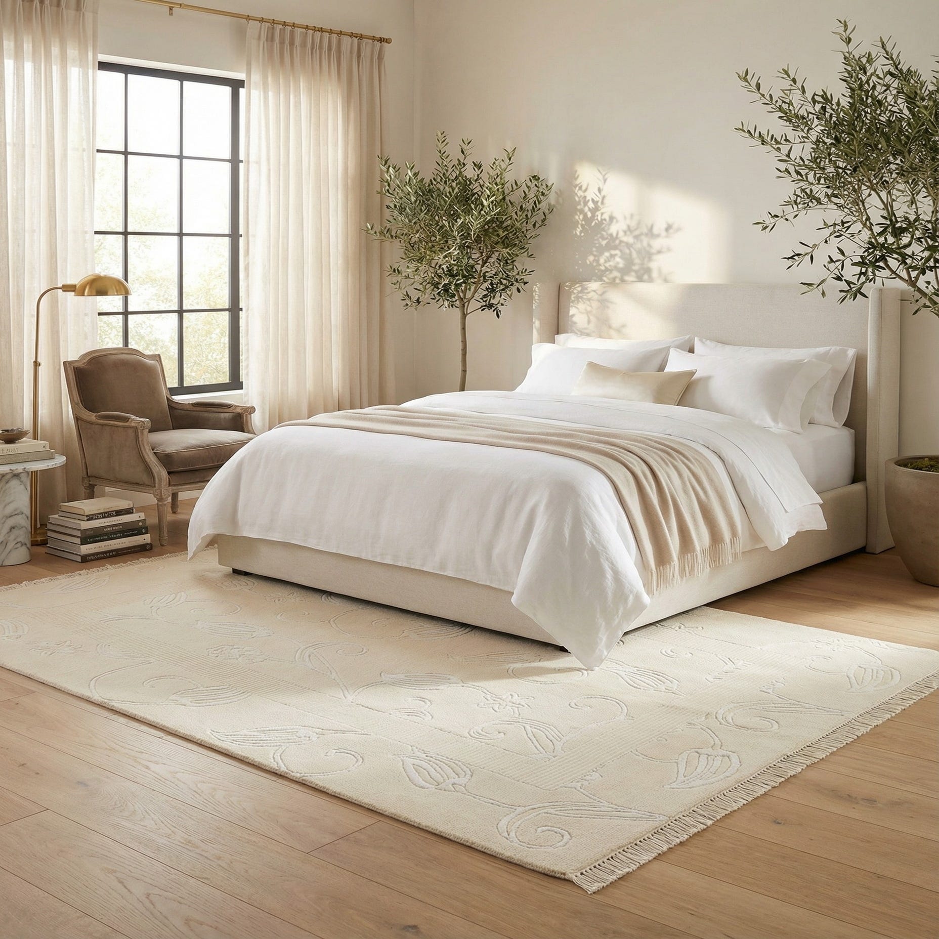 Primary color is Beige. Colors in this rug include: Beige, Ivory.