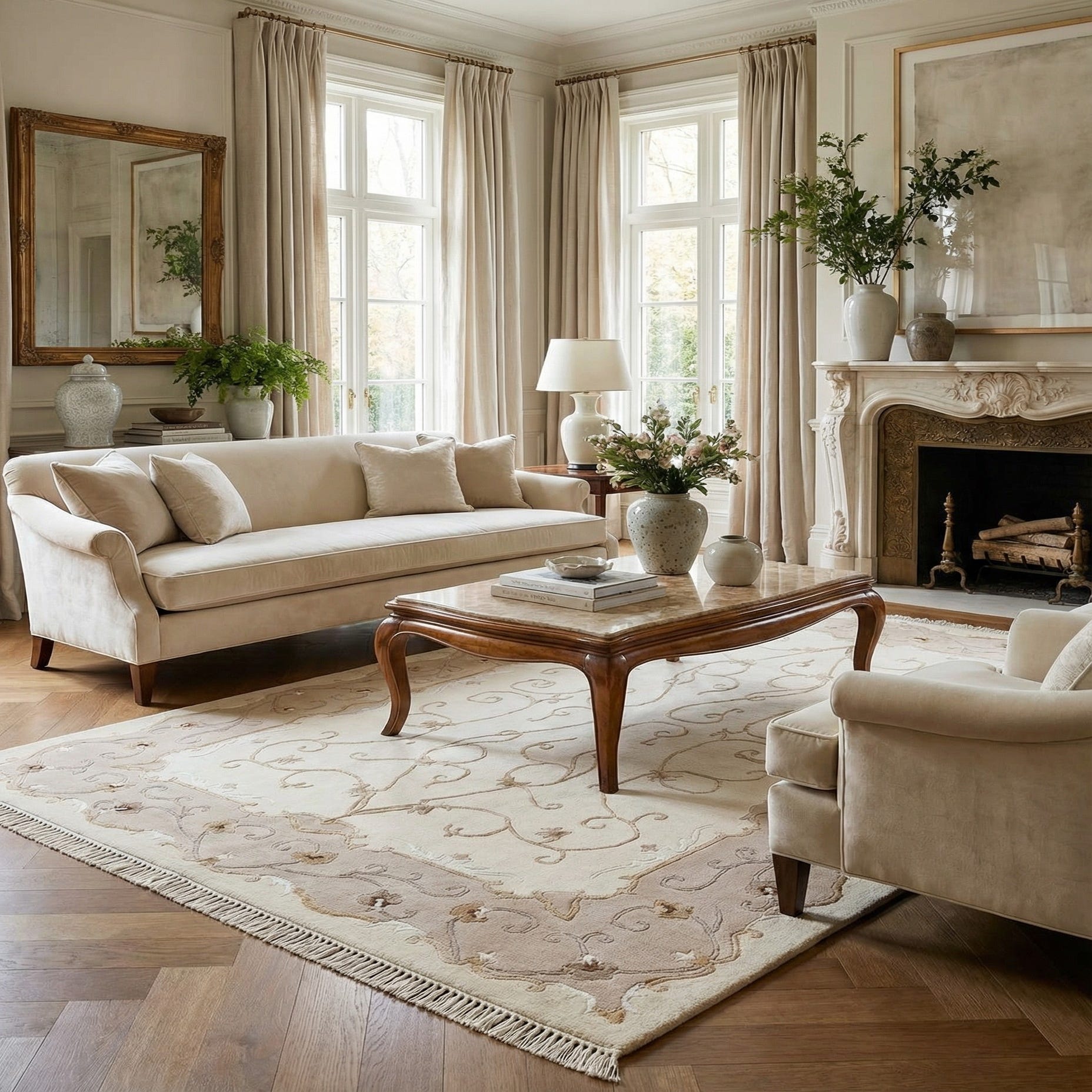 Primary color is Beige. Colors in this rug include: Beige, Brown, Gray, Ivory, Light Brown, Tan.