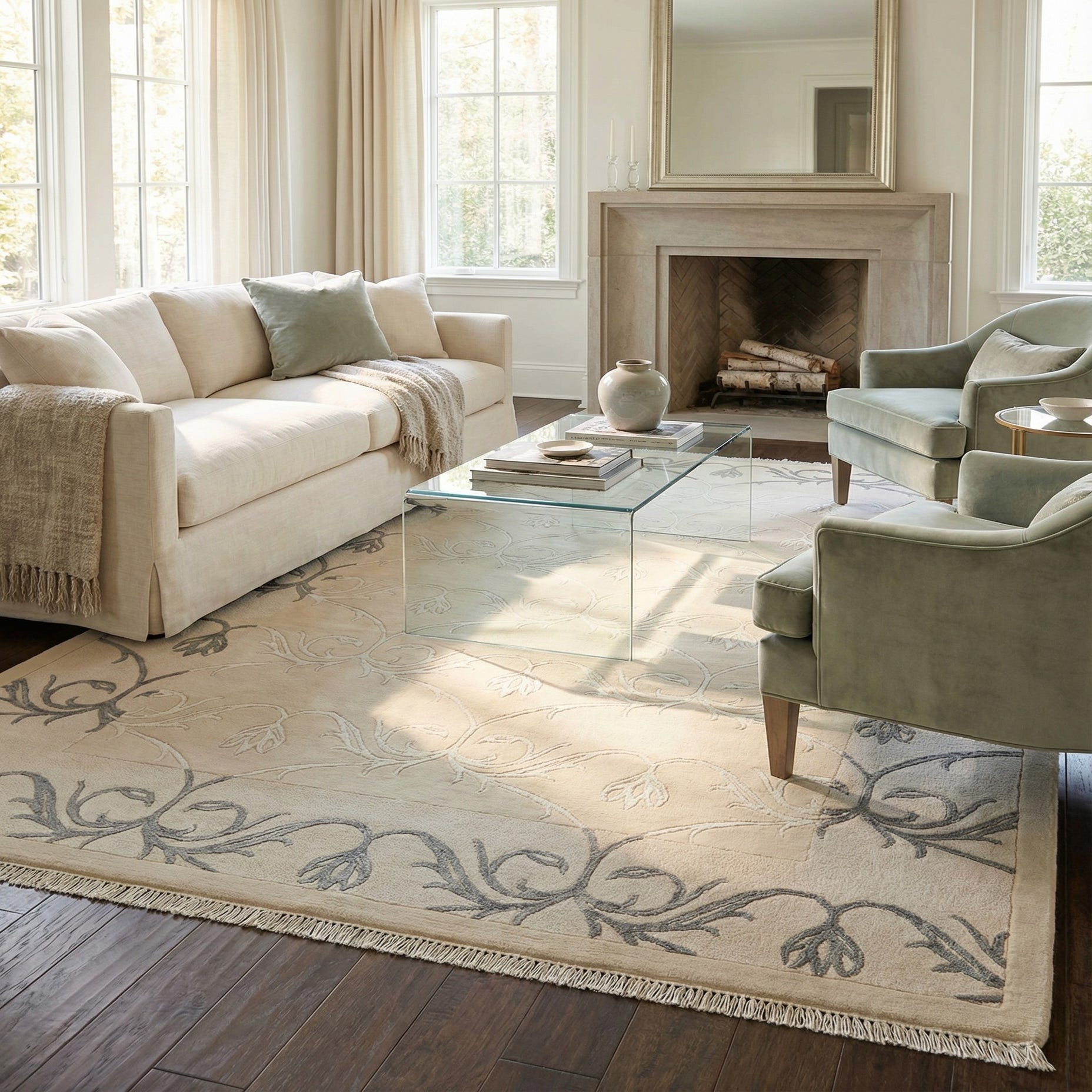 Primary color is Beige. Colors in this rug include: Beige, Gray, Ivory.