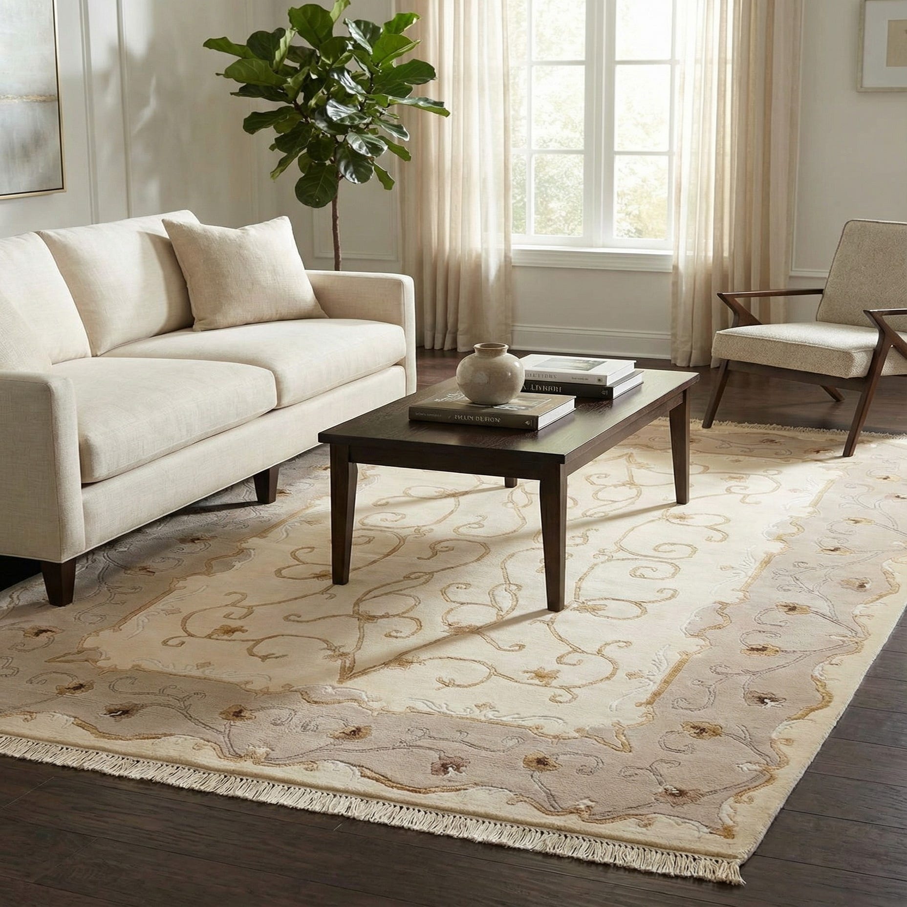 Primary color is Beige. Colors in this rug include: Beige, Brown, Ivory, Light Brown, Tan.