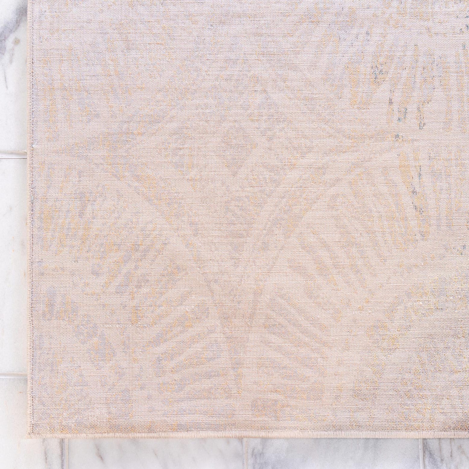 Primary color is Beige. Colors in this rug include: Beige, Light Blue, Navy Blue, Tan.