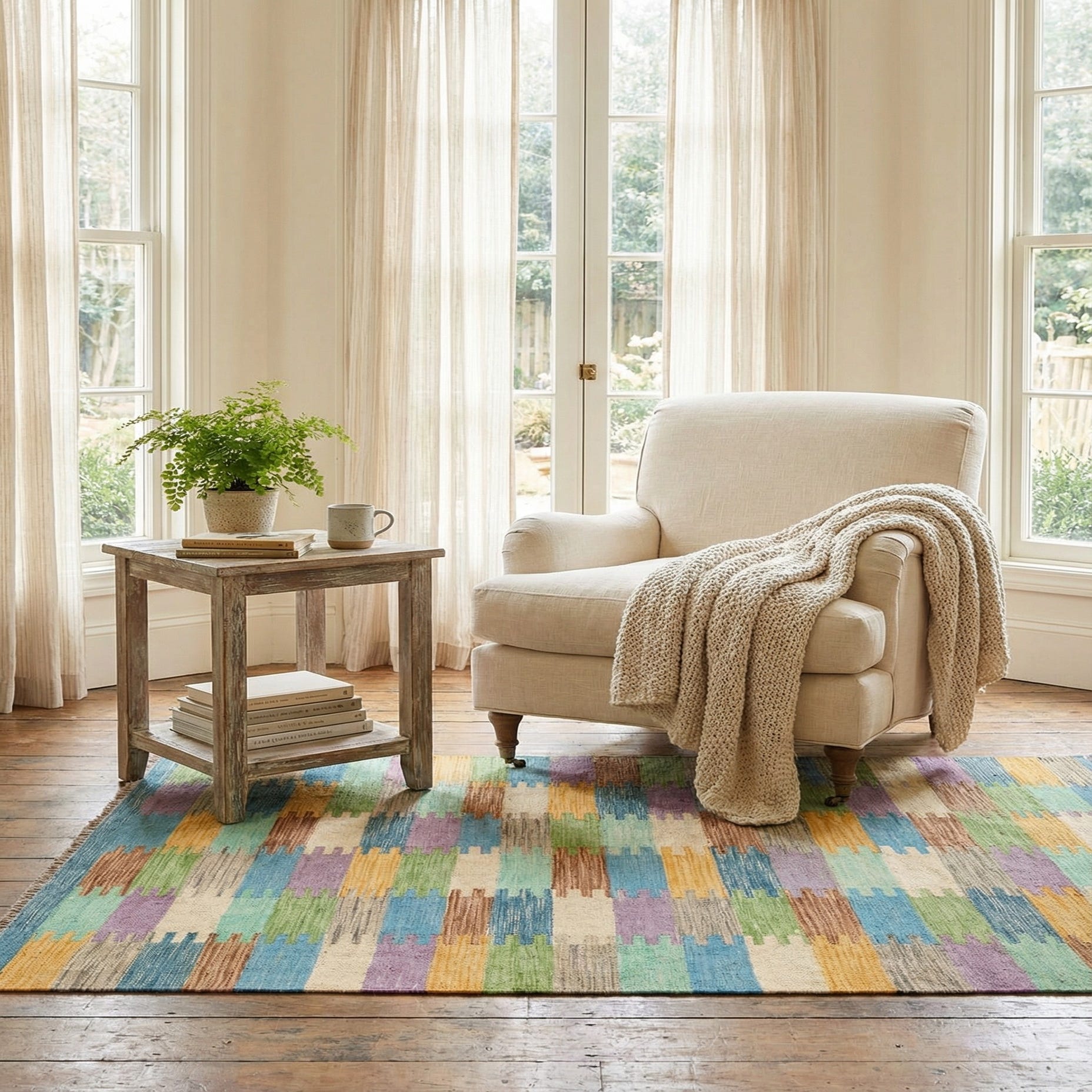 4' 2 x 5' 8 Hand Woven Kilim Maymana Wool Rug