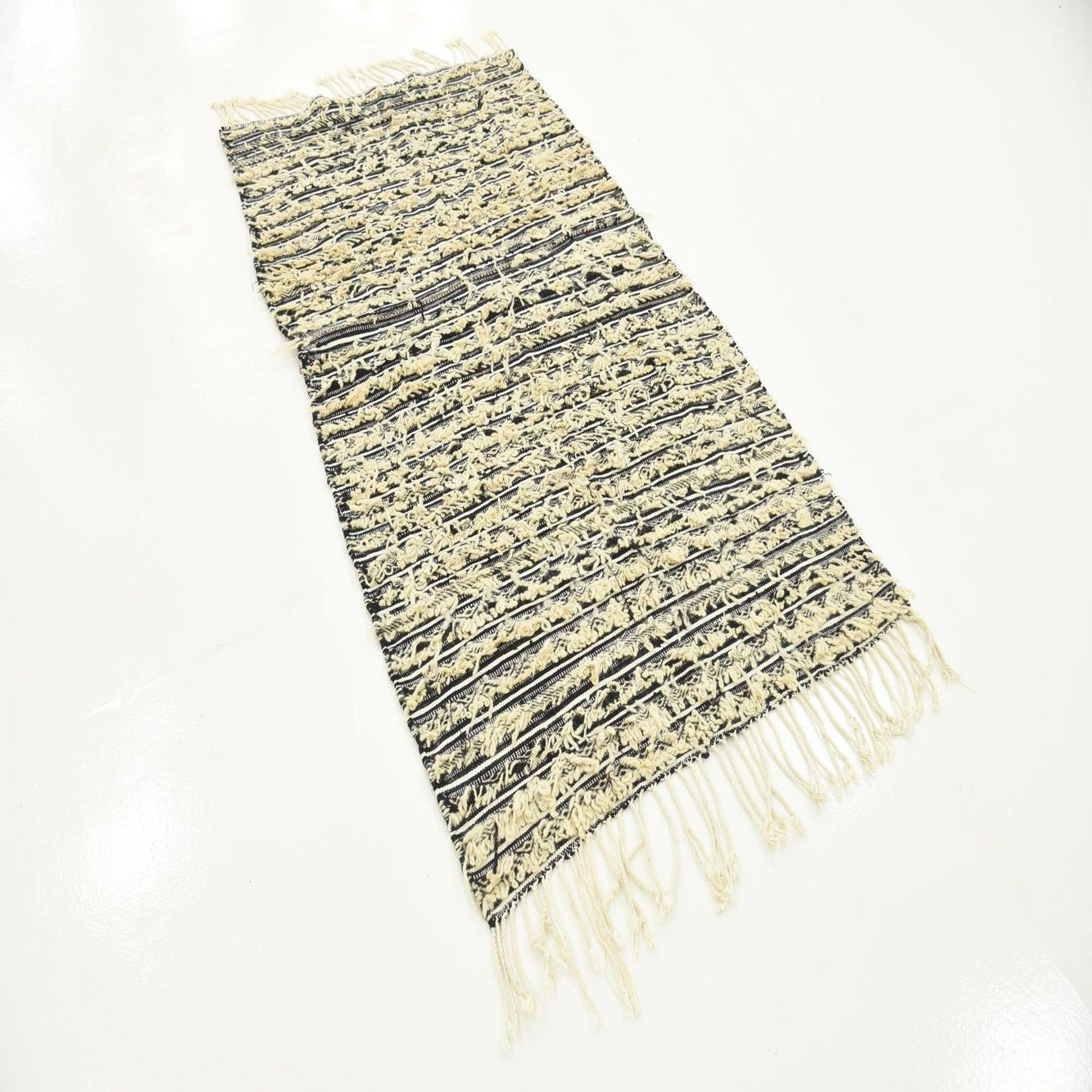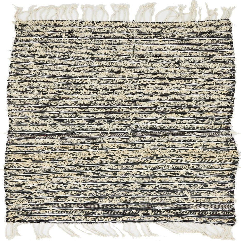 Primary color is Beige. Colors in this rug include: Beige, Black, Ivory.