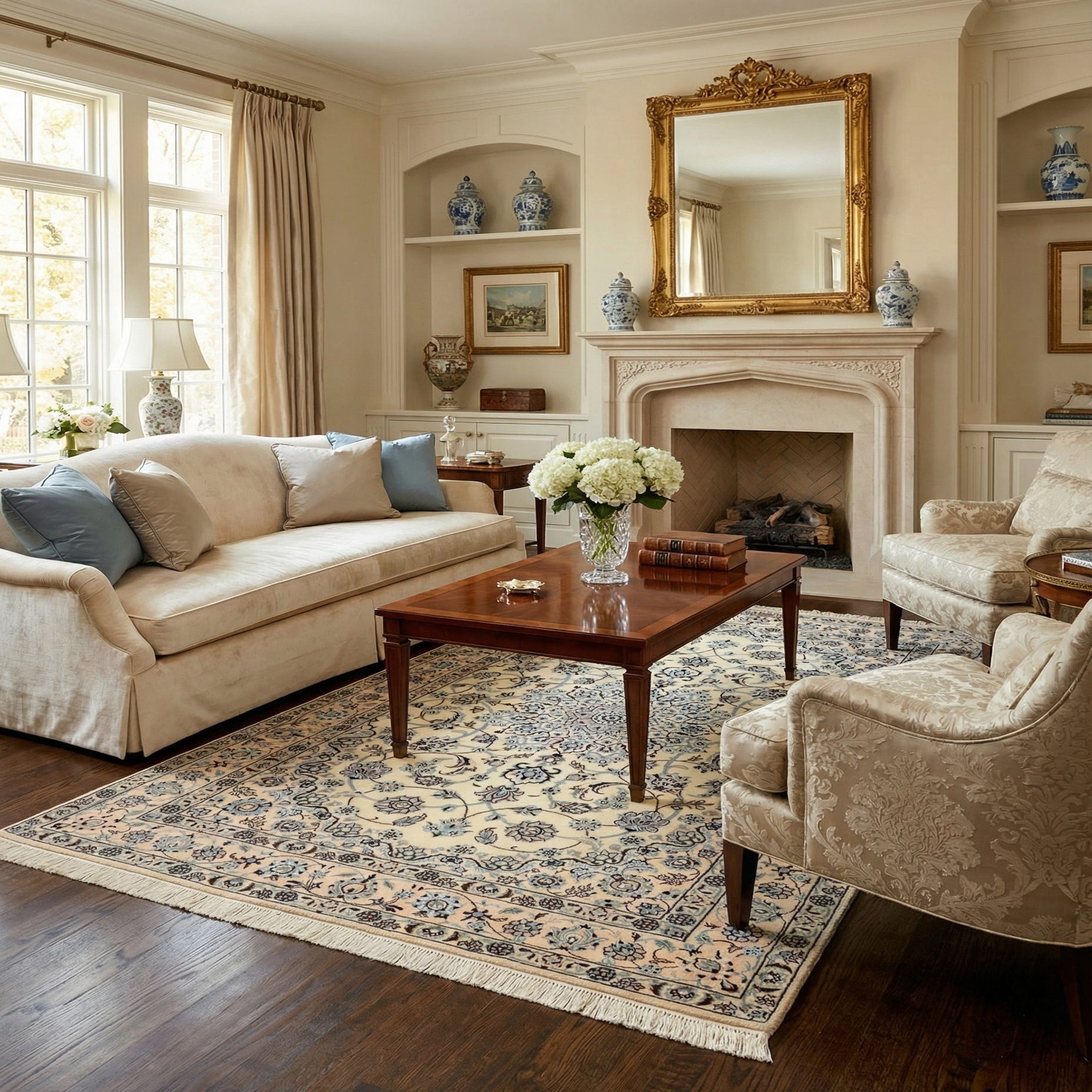 Primary color is Beige. Colors in this rug include: Beige, Brown.