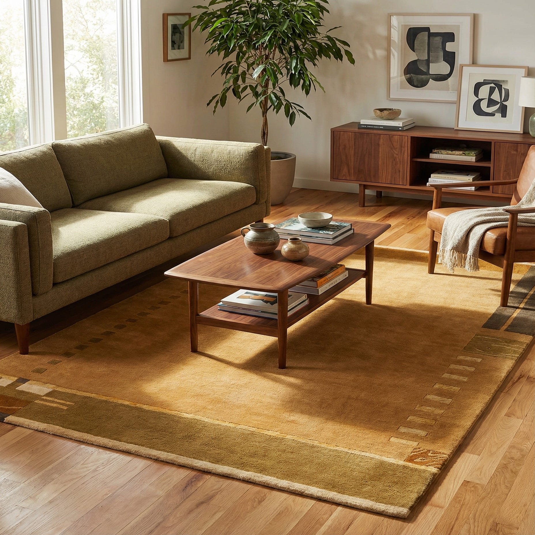 Primary color is Beige. Colors in this rug include: Beige, Olive, Light Brown.