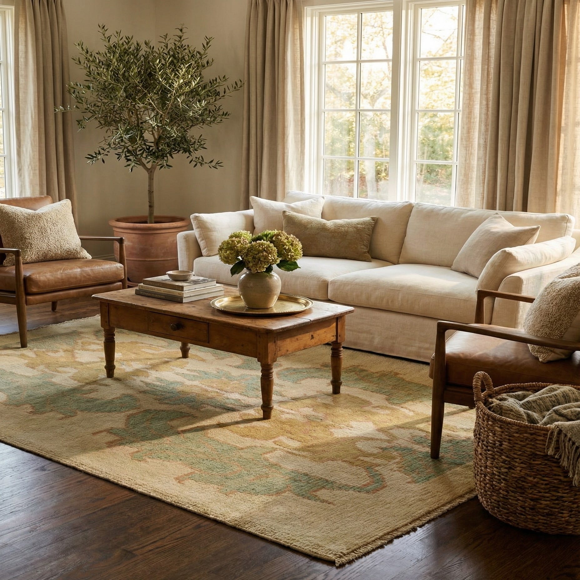 Primary image 4' 4 x 6' 5  Hand Knotted Oushak Wool Rug