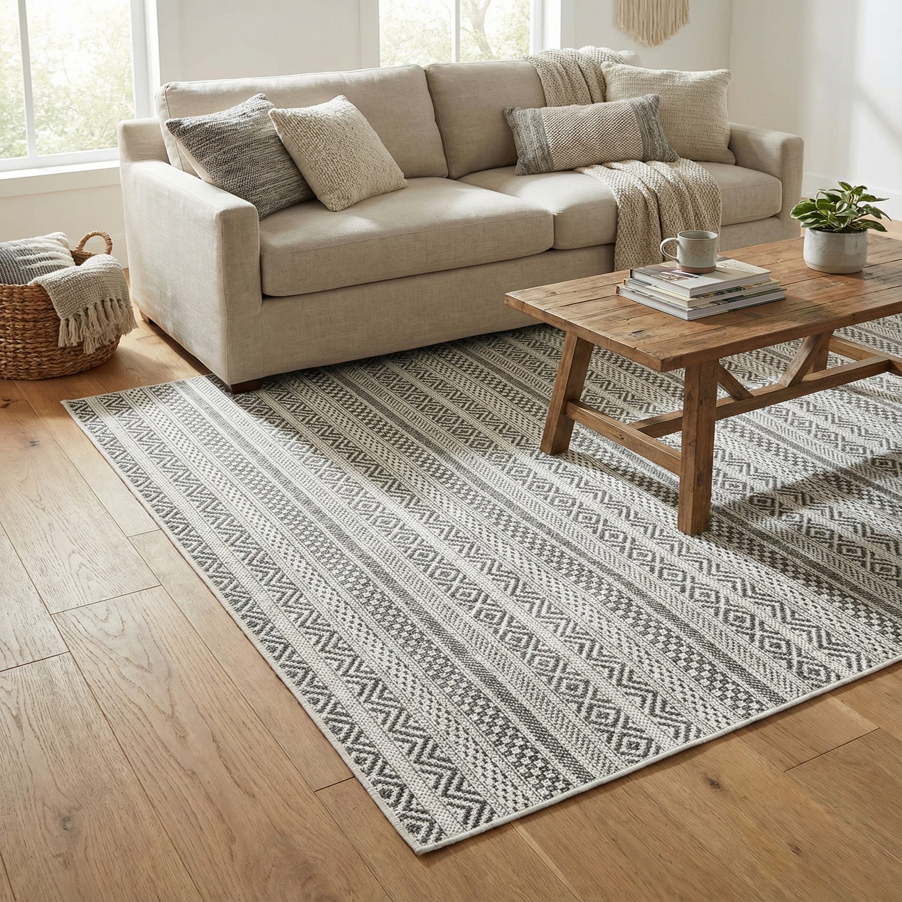 4' x 6' Washable Striped Indoor / Outdoor Rug