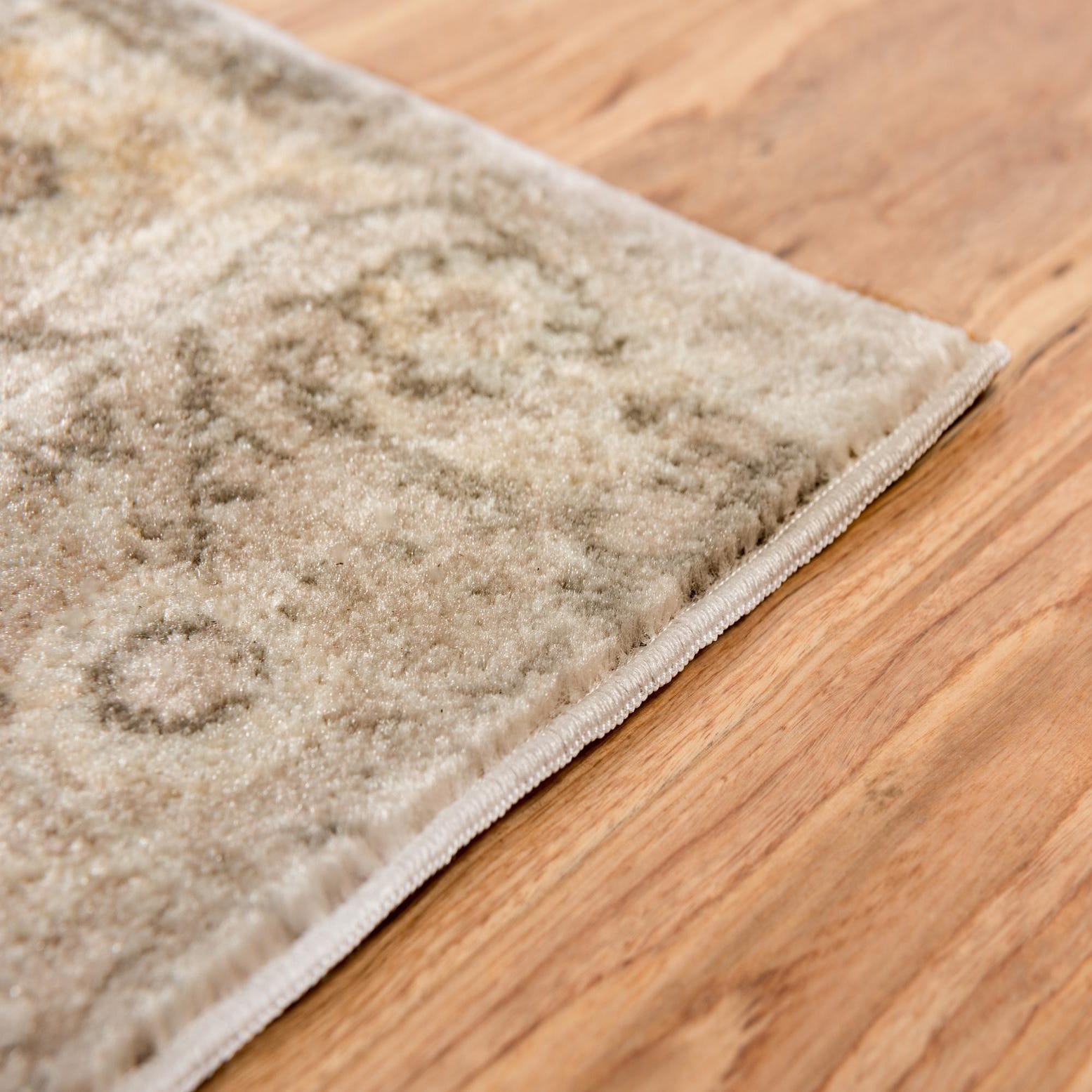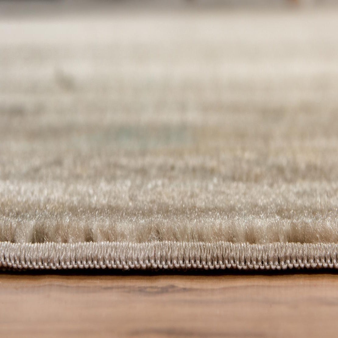Primary color is Beige. Colors in this rug include: Beige, Gray, Light Blue, Brown, Tan.