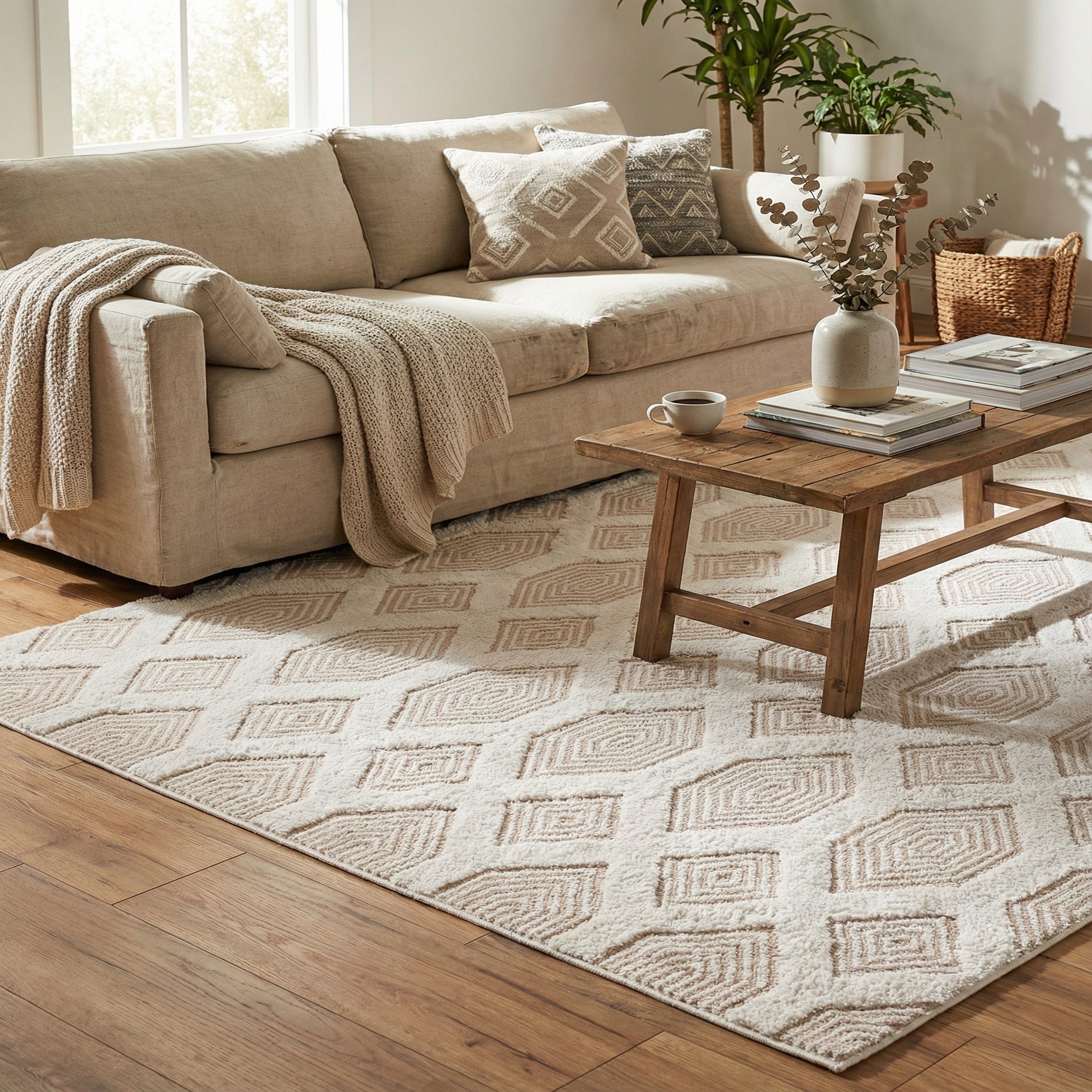 Primary color is Beige. Colors in this rug include: Beige, Ivory.