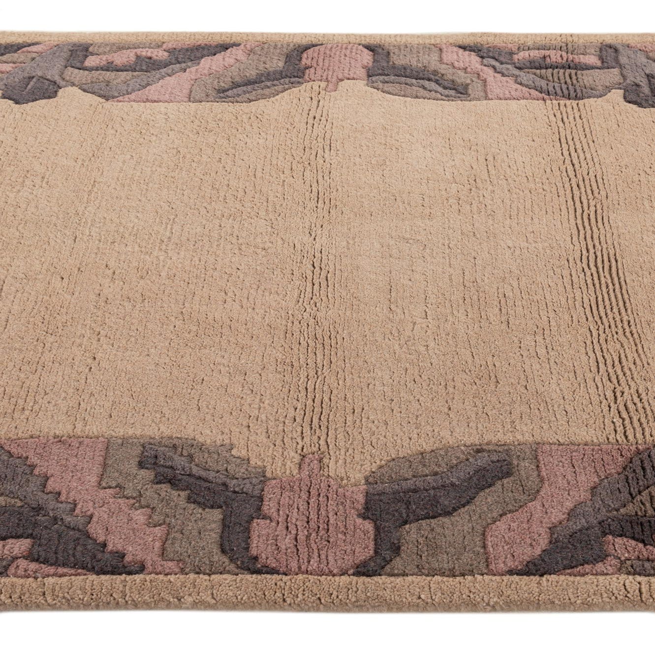 Primary color is Beige. Colors in this rug include: Beige, Gray, Purple, Violet.