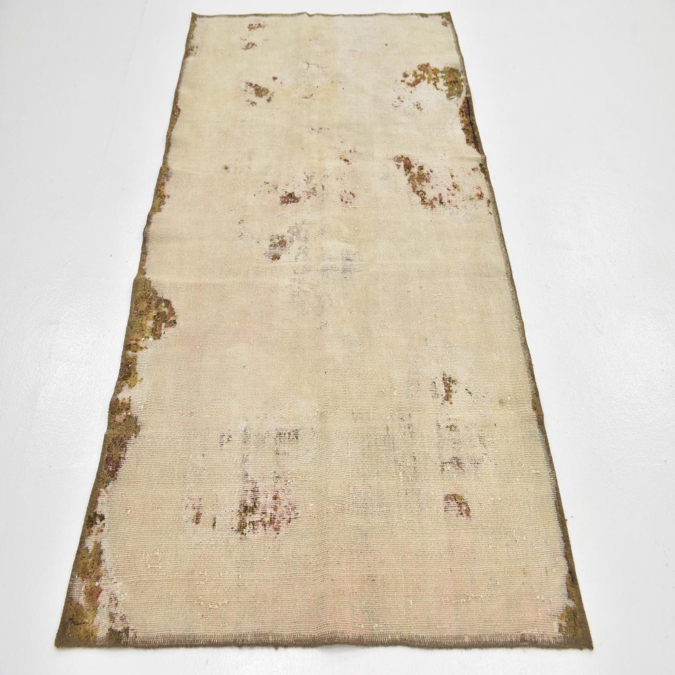 This Persian Ultra Vintage rug is an antique Persian Rug that has been washed, over-dyed, and then shaved down to a low pile. Look at the detail pictures to fully appreciate the uniqueness of this piece.