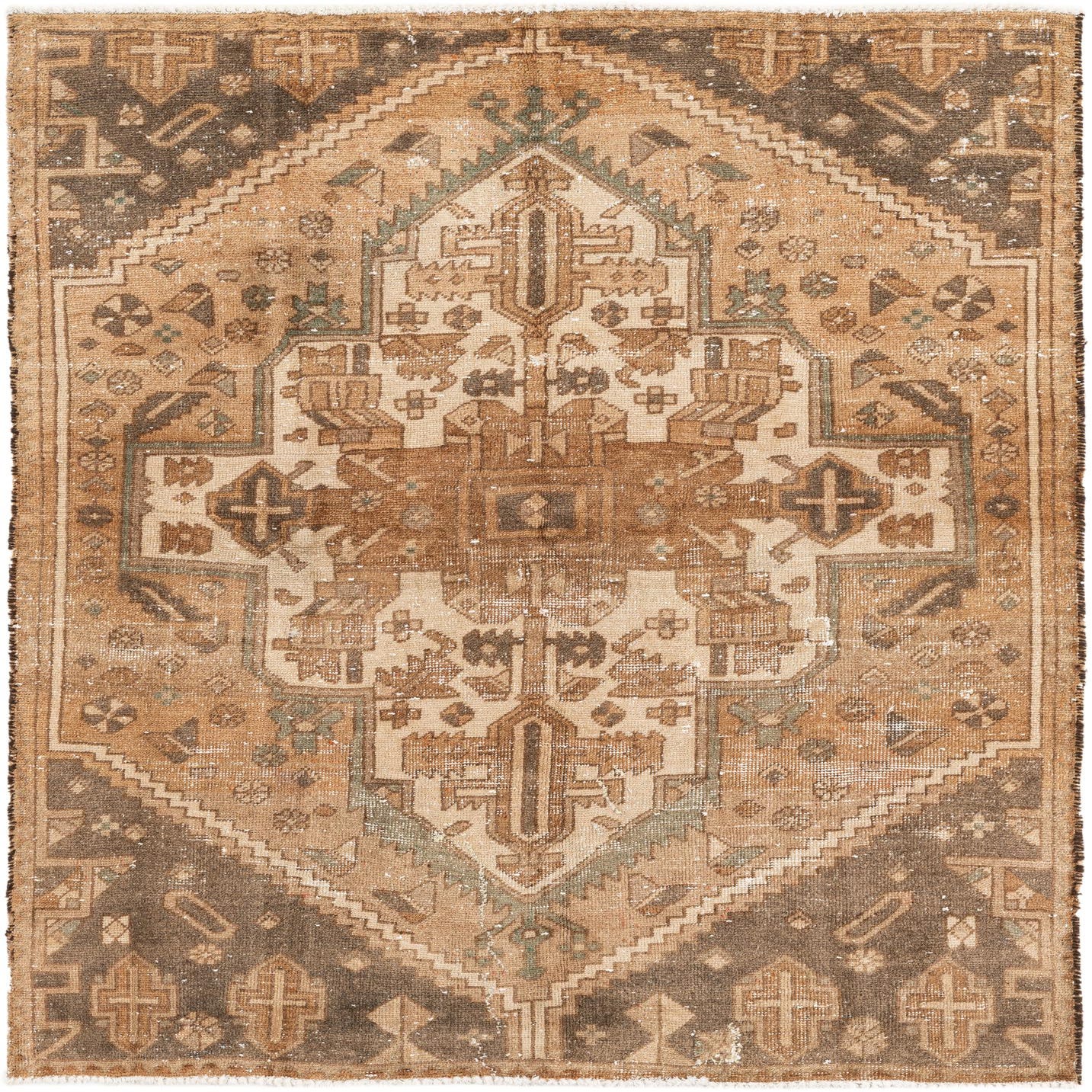 This Persian Ultra Vintage rug is an antique Persian Rug that has been washed, over-dyed, and then shaved down to a low pile. Look at the detail pictures to fully appreciate the uniqueness of this piece.