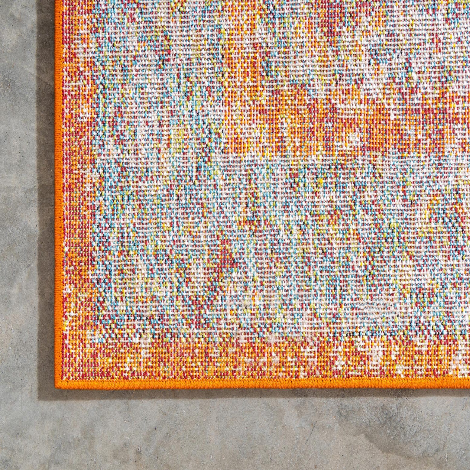 Primary color is Beige. Colors in this rug include: Beige, Blue, Gray, Ivory, Navy Blue, Orange, Red.