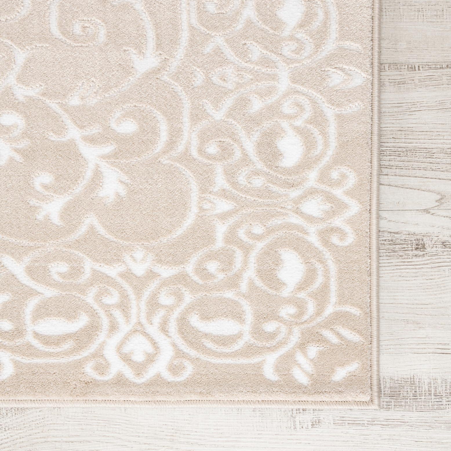 Primary color is Beige. Colors in this rug include: Beige, Ivory.