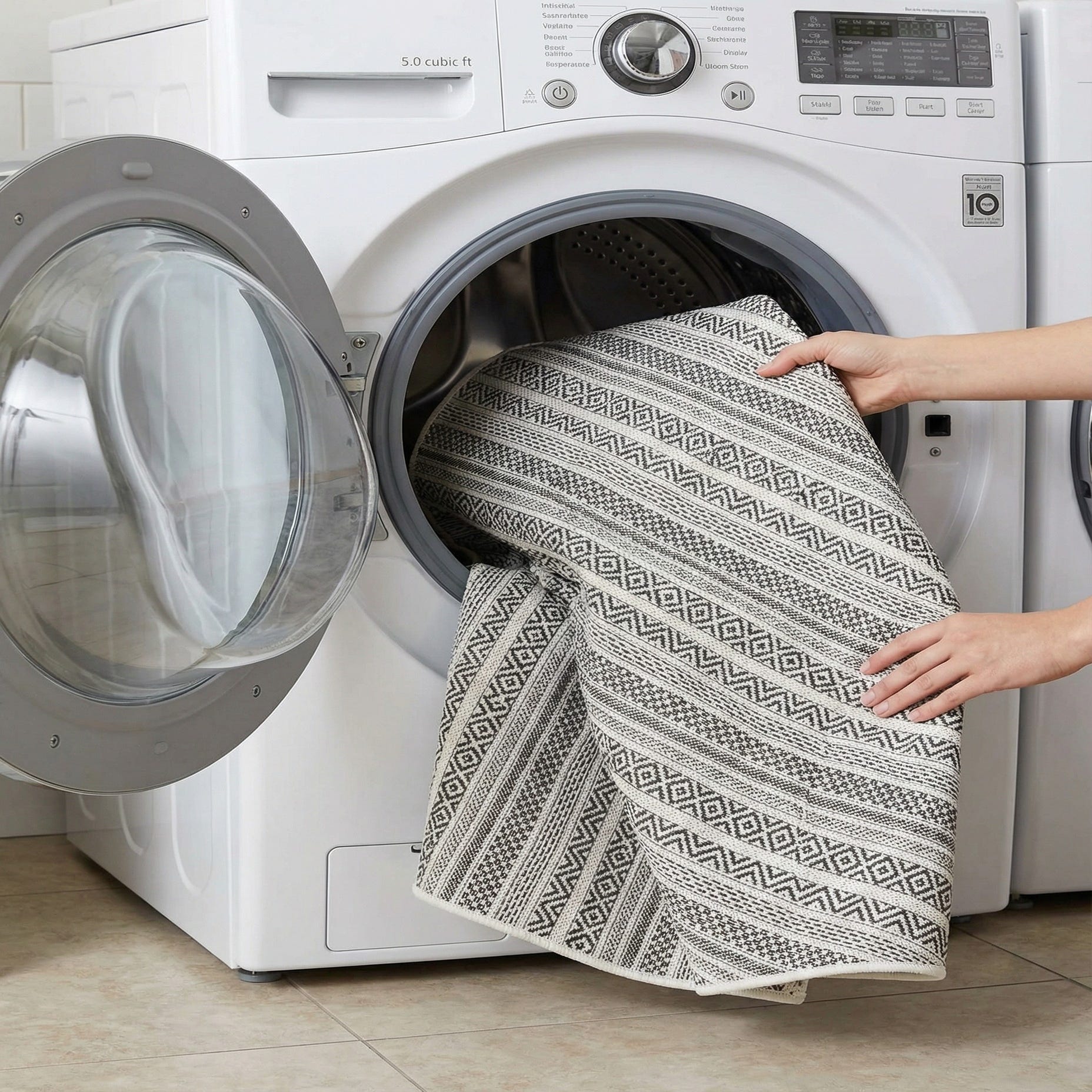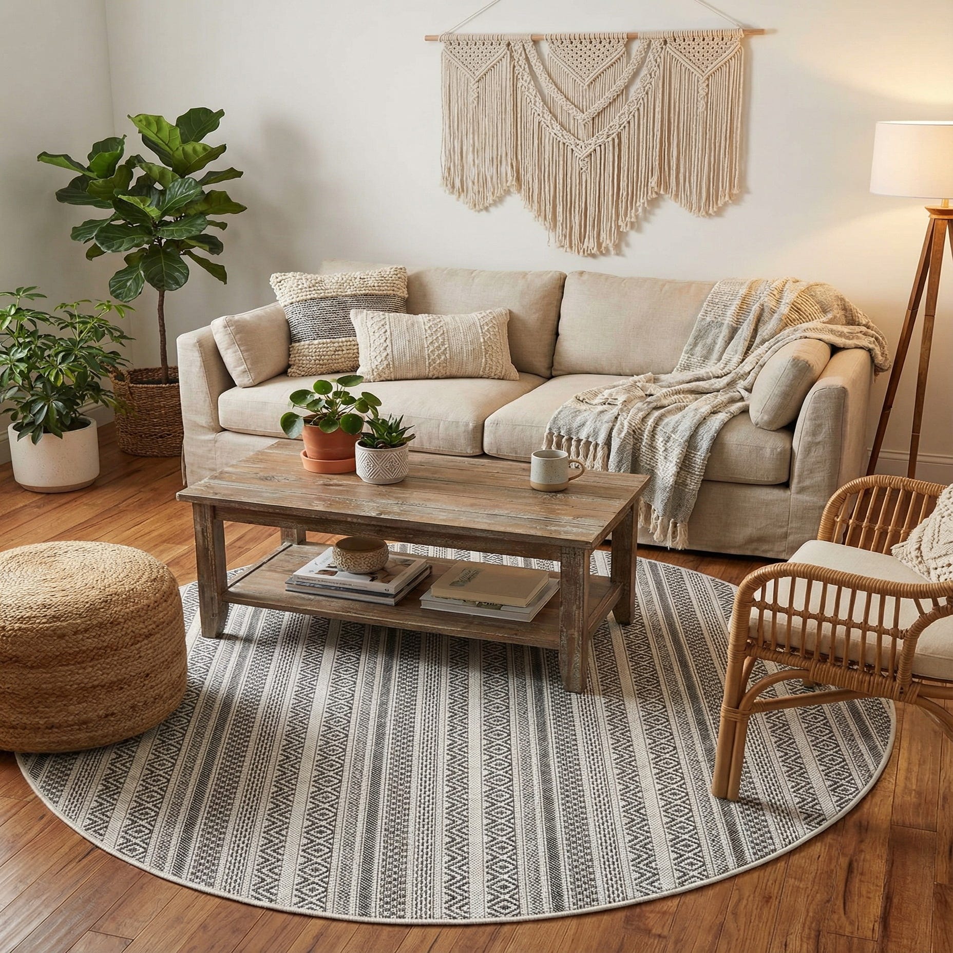 5' 3 x 5' 3 Washable Striped Indoor / Outdoor Round Rug