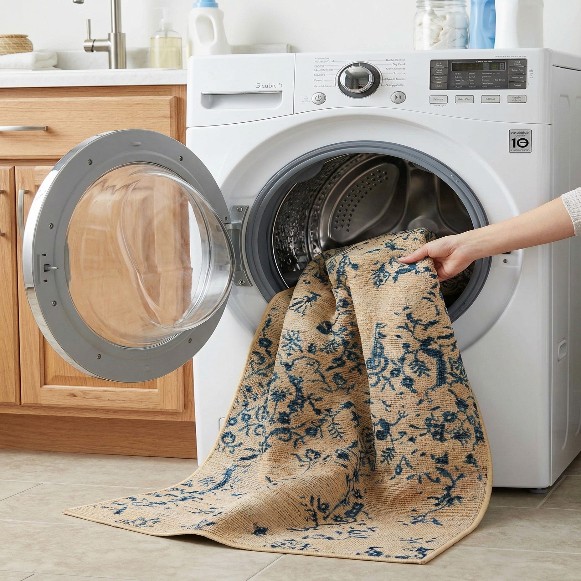 2' 7 x 5' 3 Washable Botanical Indoor / Outdoor Runner Rug