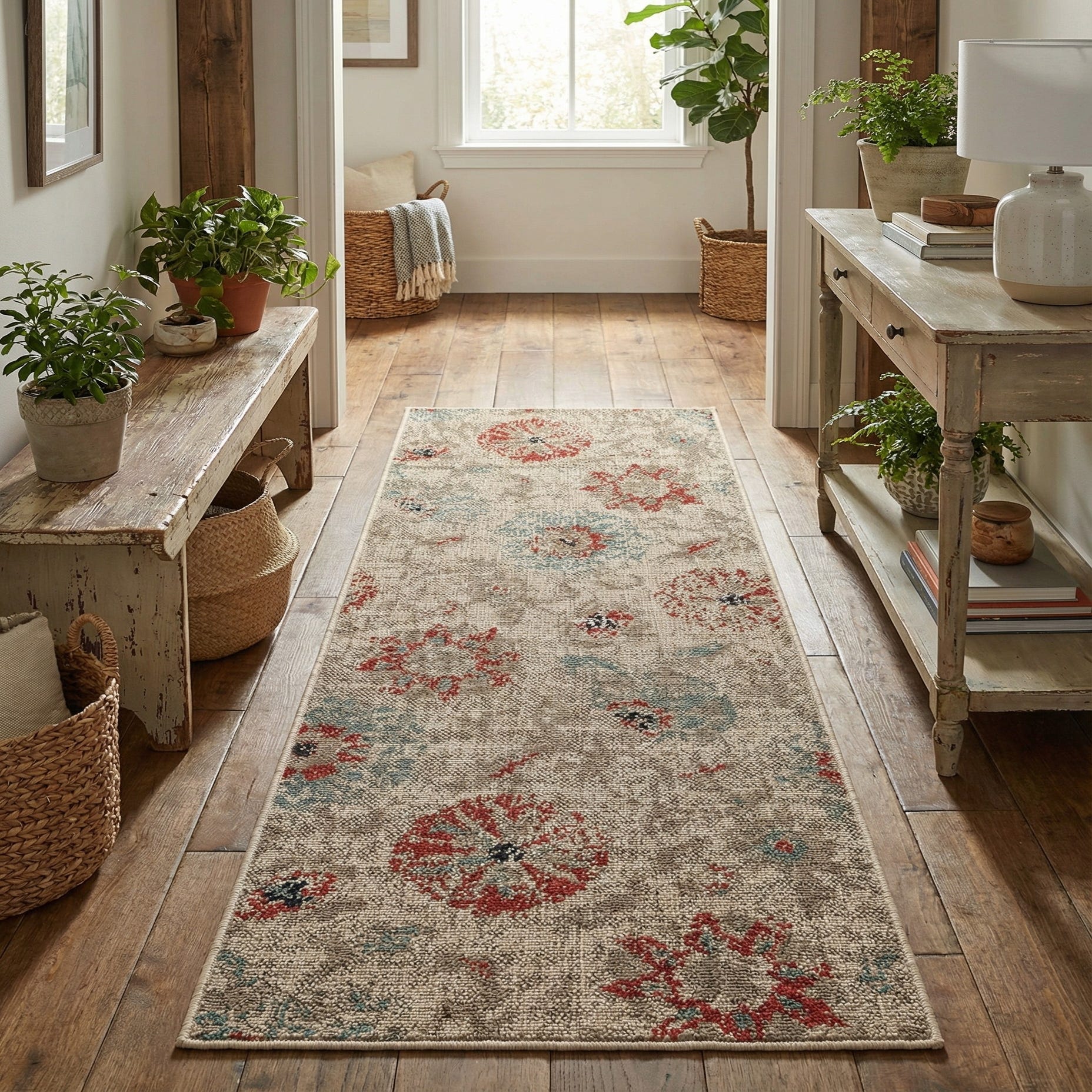 Primary image 2' x 5'  Washable Botanical Indoor / Outdoor Runner Rug