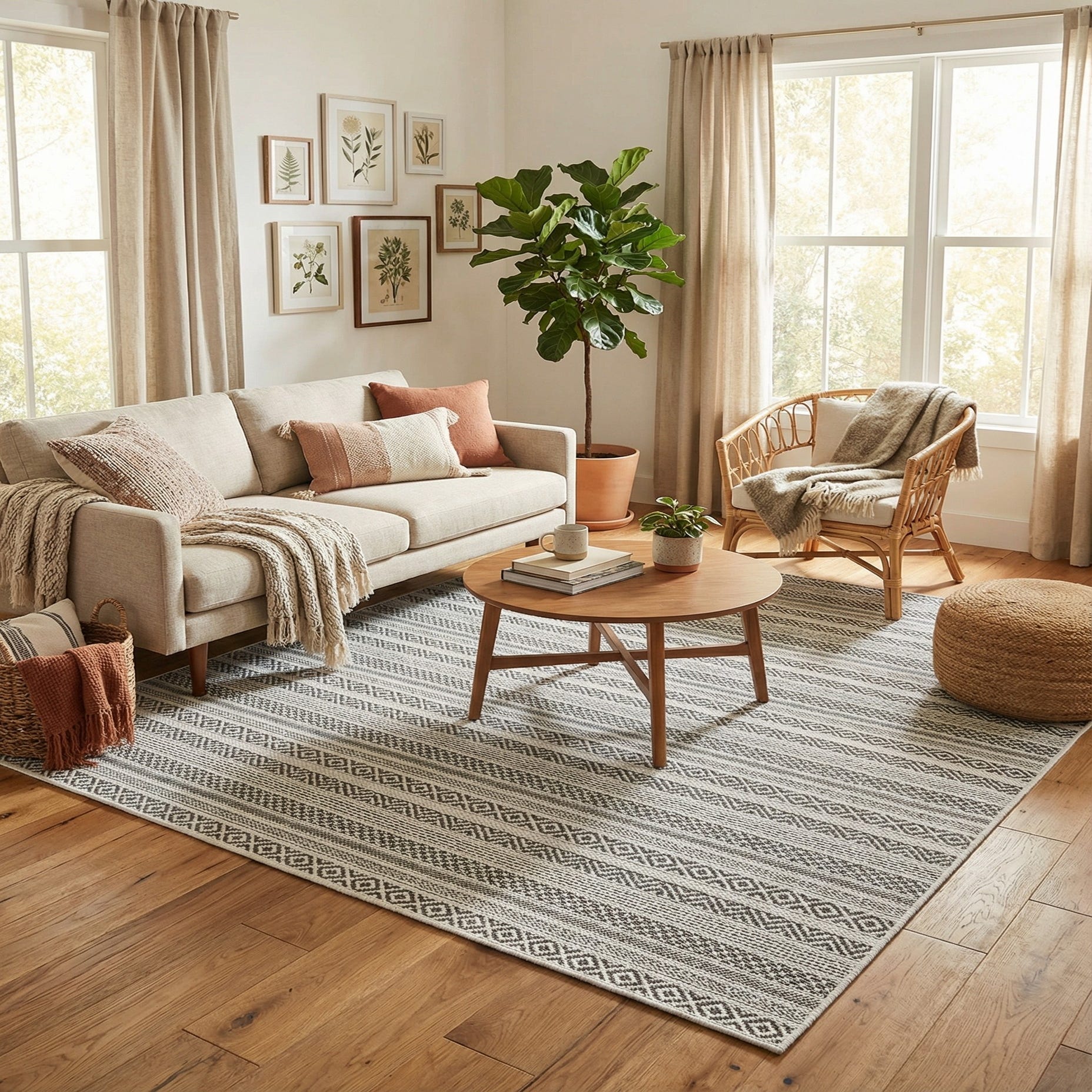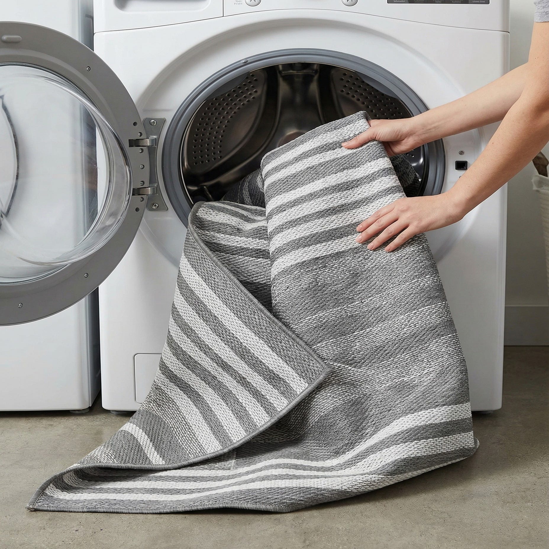 5' 3 x 5' 3 Washable Striped Indoor / Outdoor Square Rug