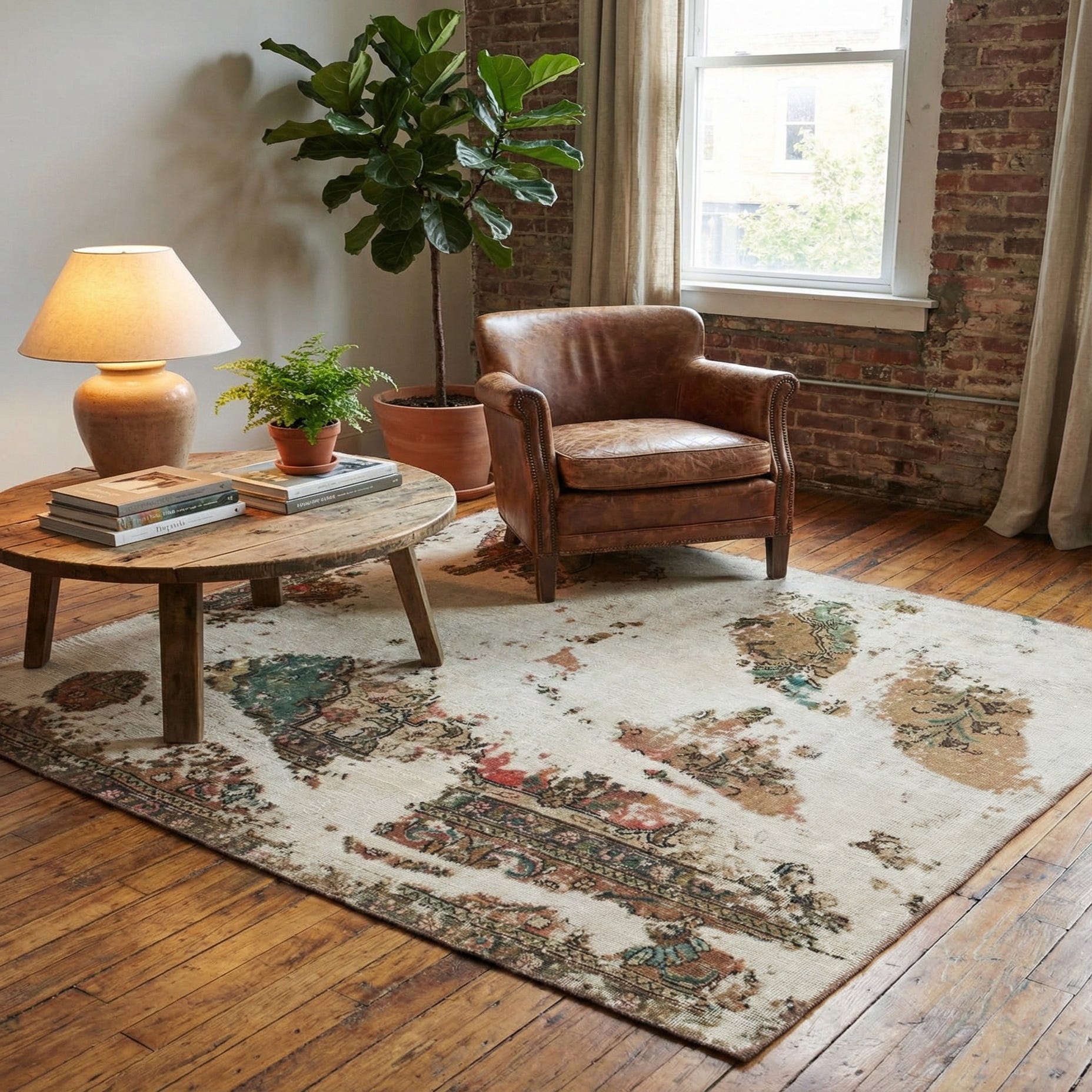 This Persian Ultra Vintage rug is an antique Persian Rug that has been washed, over-dyed, and then shaved down to a low pile. Look at the detail pictures to fully appreciate the uniqueness of this piece.