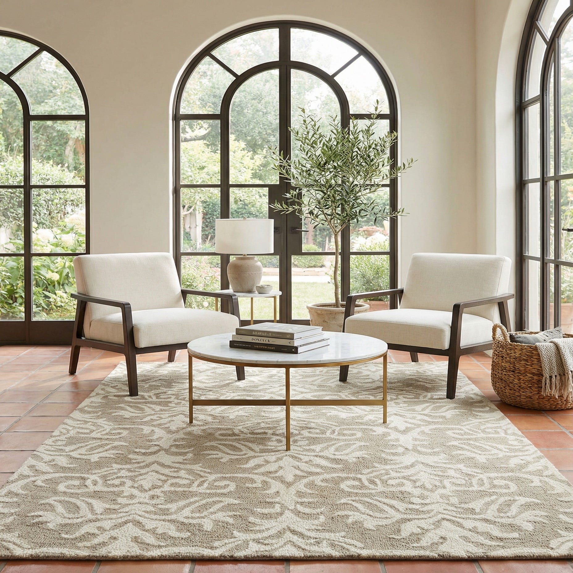 Primary color is Beige. Colors in this rug include: Beige, Ivory.