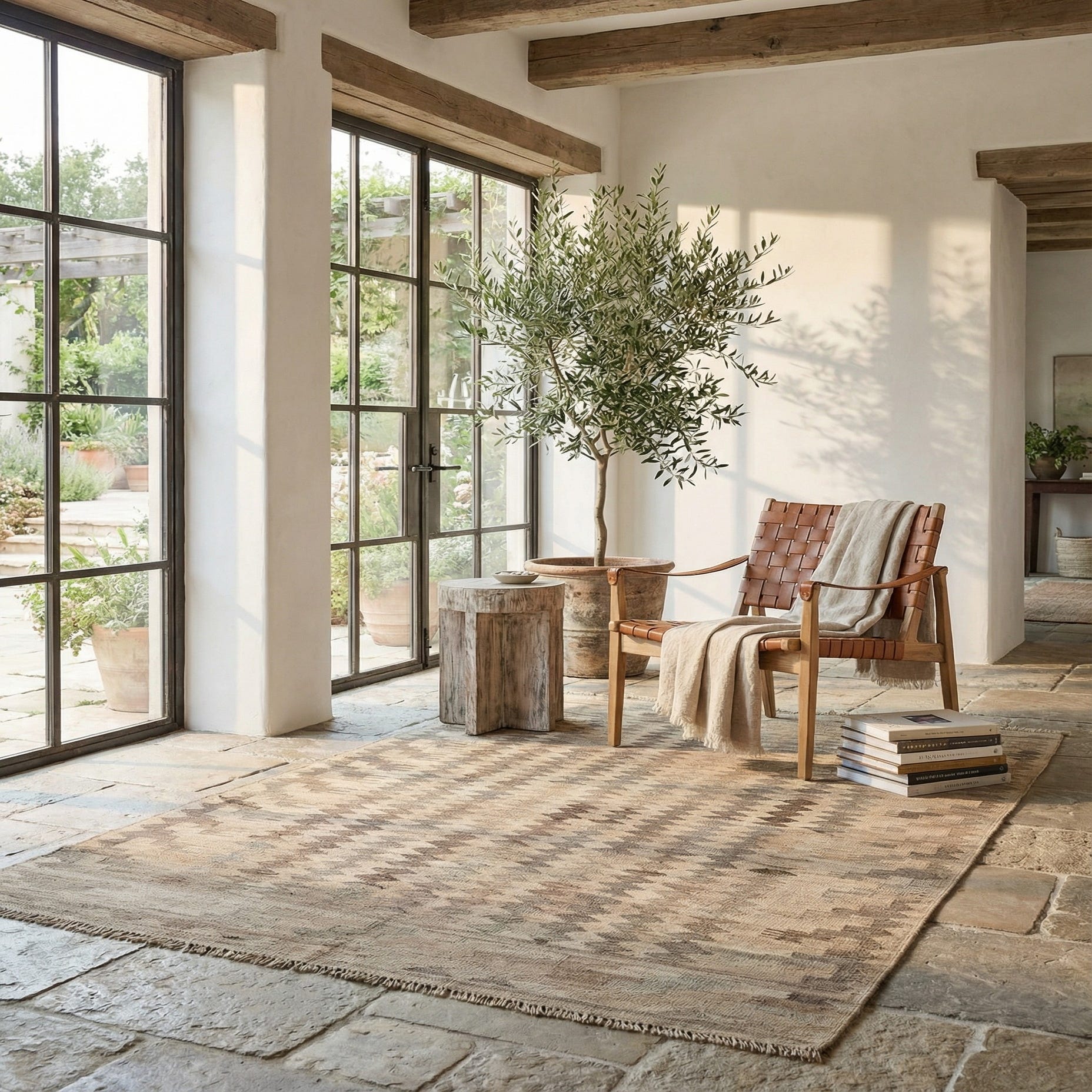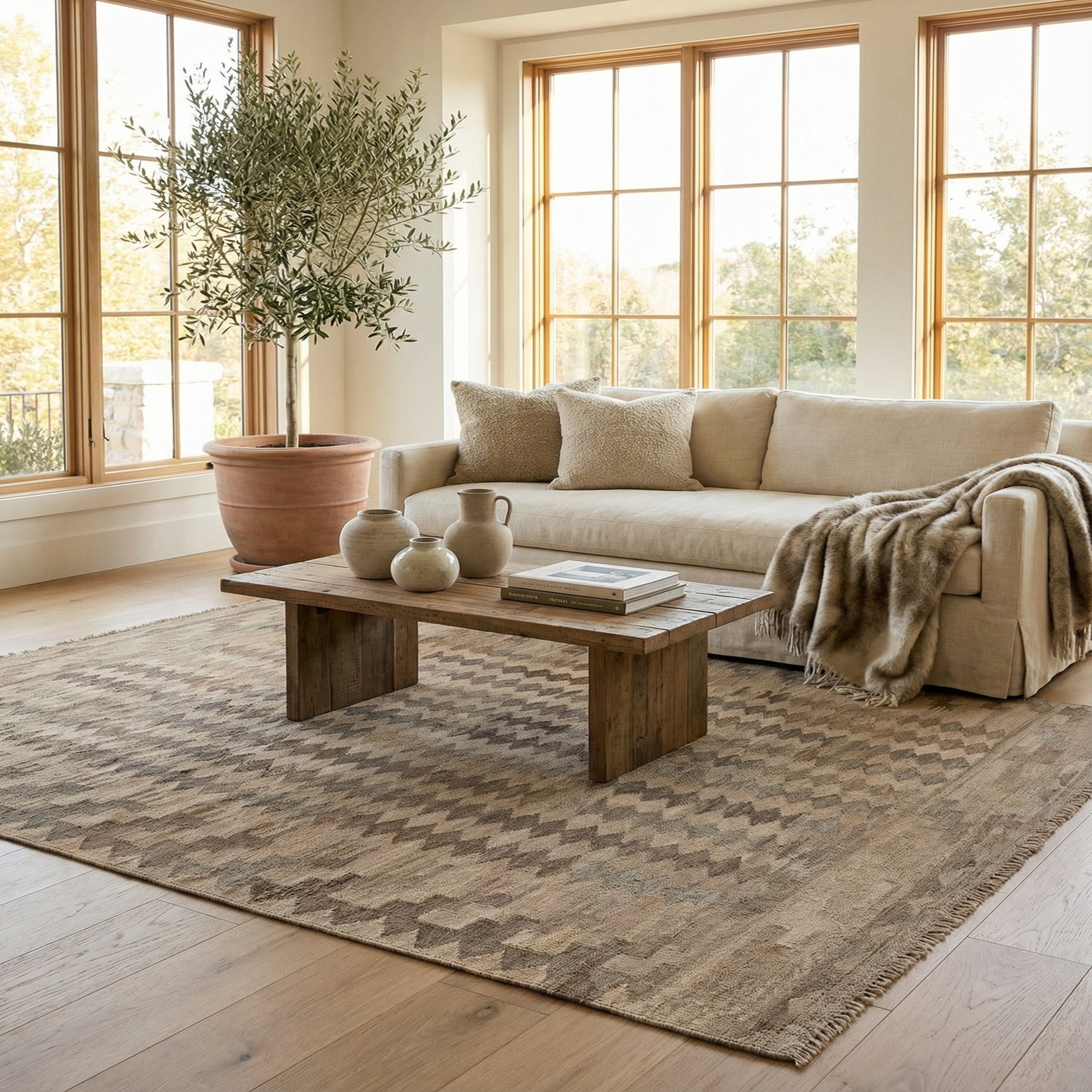 5' 1 x 6' 11 Hand Woven Kilim Maymana Wool Rug
