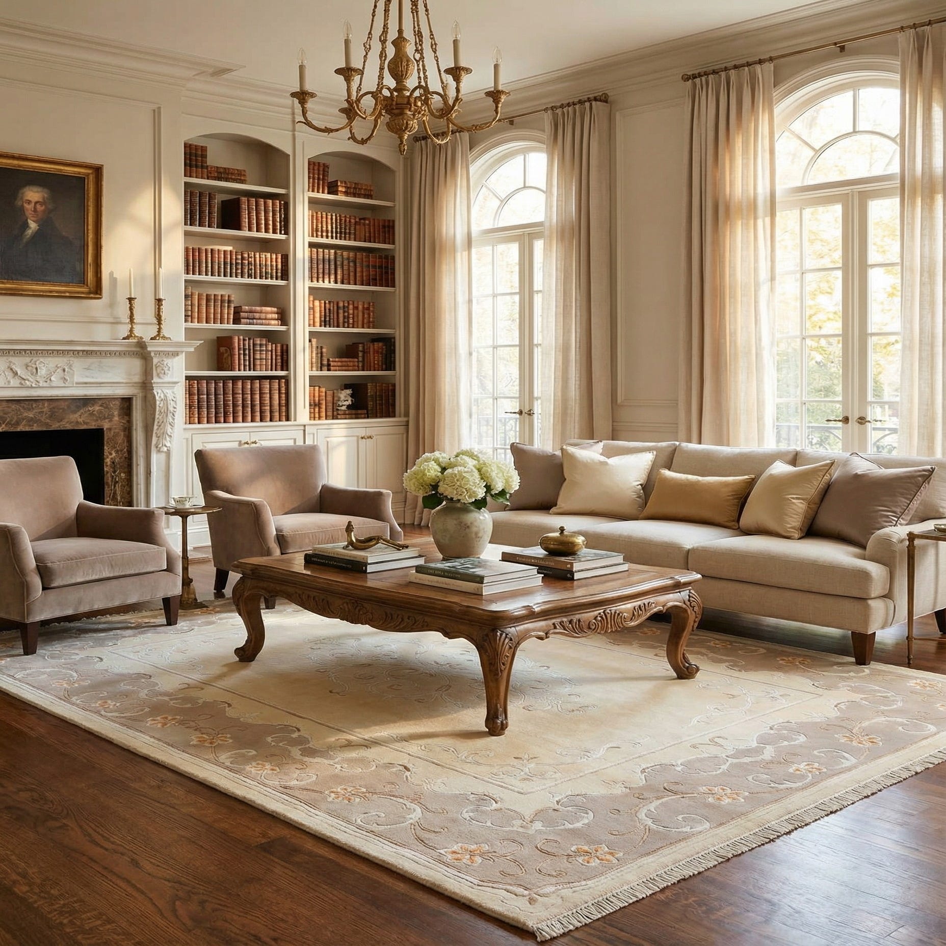Primary color is Beige. Colors in this rug include: Beige, Brown, Ivory, Light Brown, Tan, Orange.