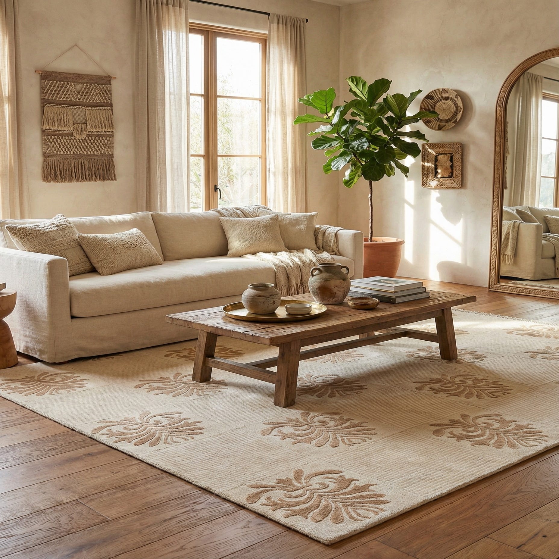 Primary color is Beige. Colors in this rug include: Beige, Brown, Light Brown.