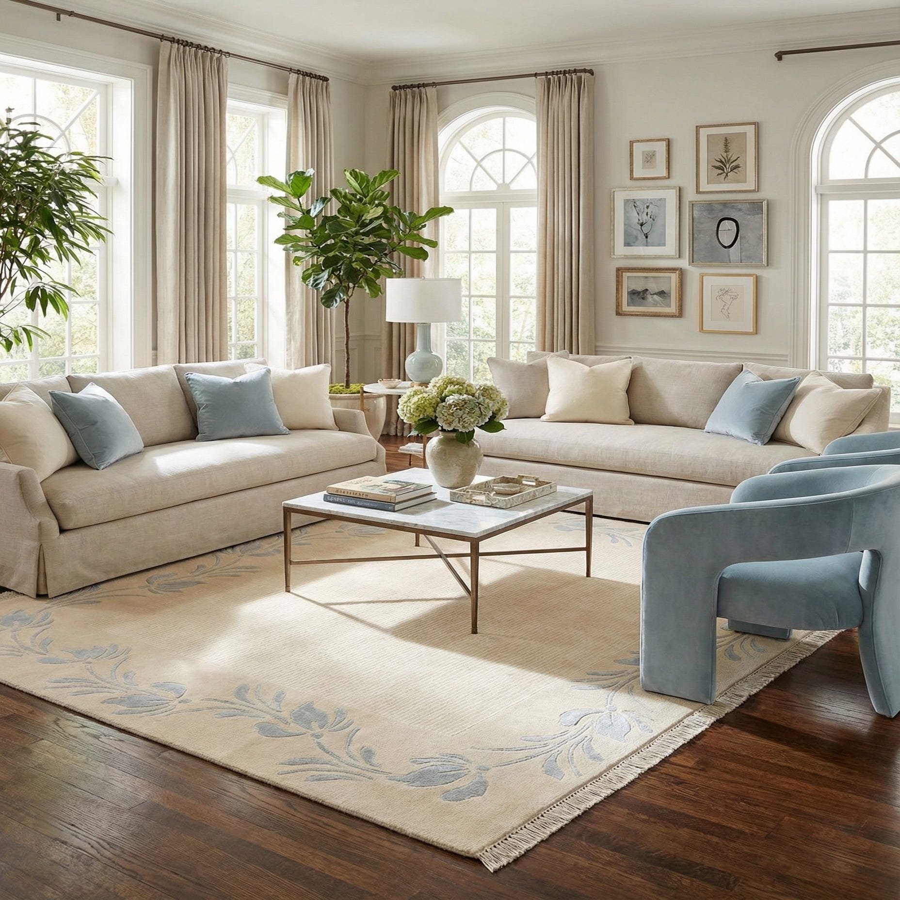 Primary color is Beige. Colors in this rug include: Beige, Ivory, Silver.