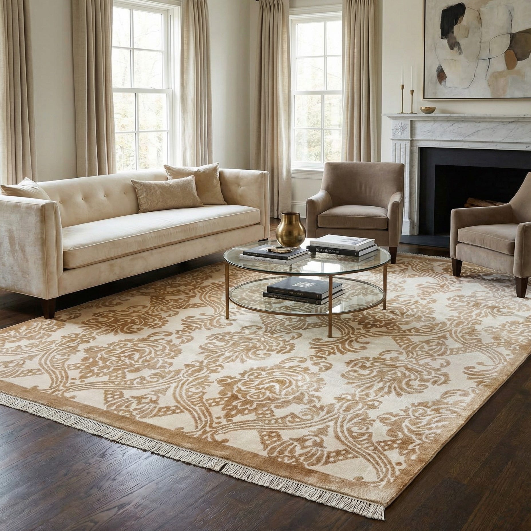 Primary color is Beige. Colors in this rug include: Beige, Brown, Light Brown.