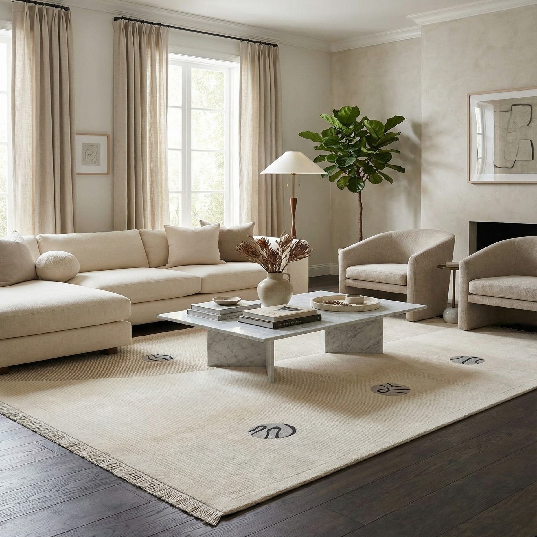 Primary color is Beige. Colors in this rug include: Beige, Black, Gray, Tan.