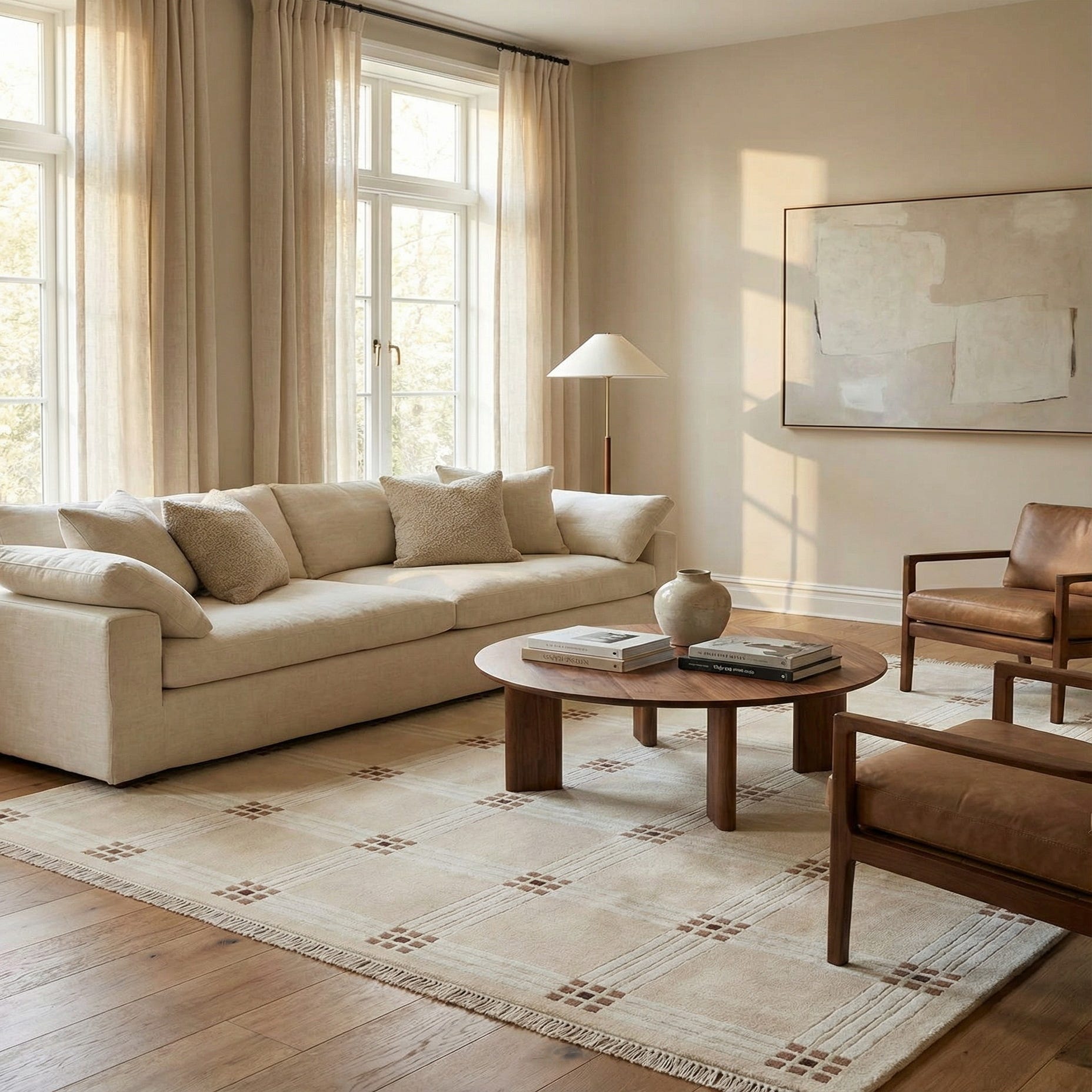 Primary color is Beige. Colors in this rug include: Beige, Brown, Light Brown, Ivory.