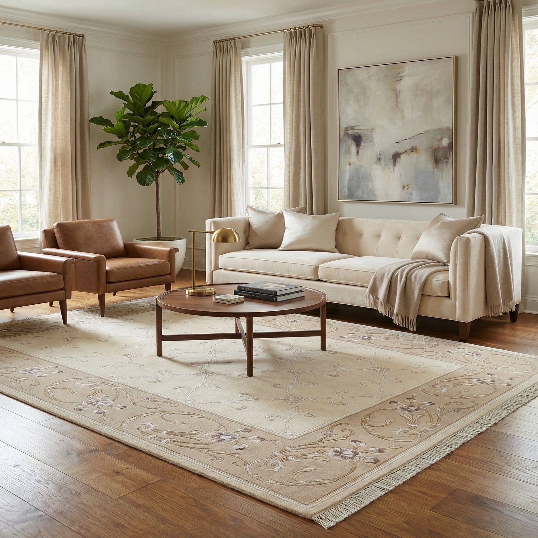 Primary color is Beige. Colors in this rug include: Beige, Brown, Ivory, Light Brown, Tan, Plum Red.