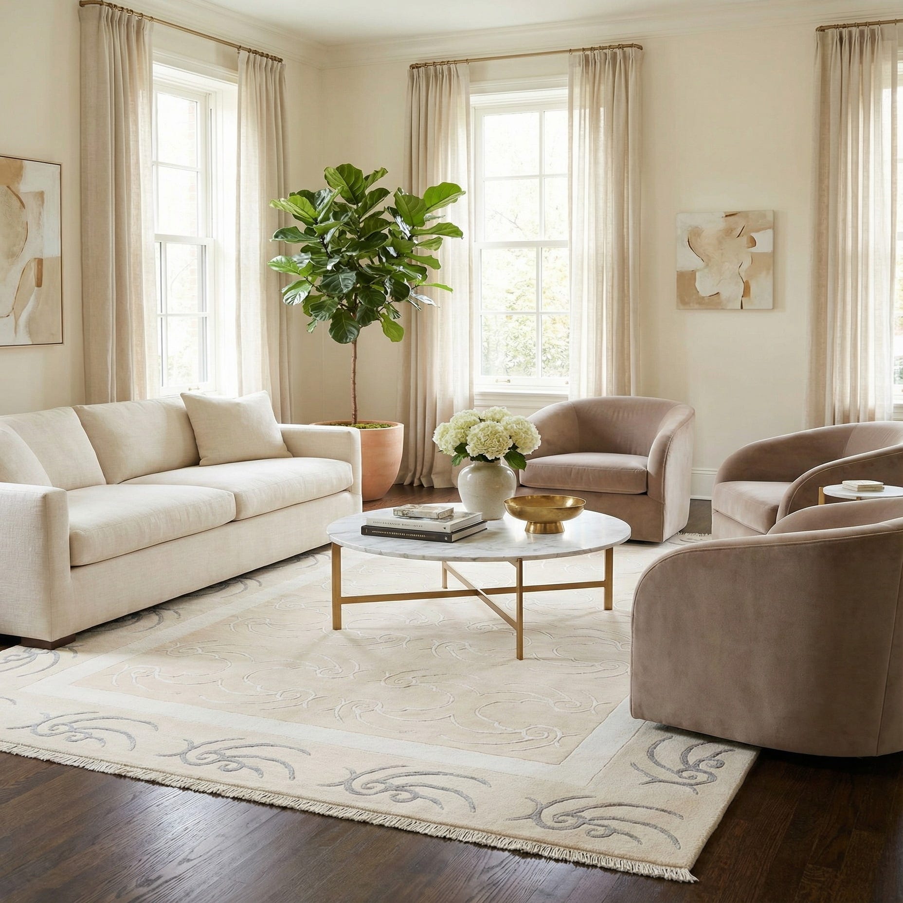 Primary color is Beige. Colors in this rug include: Beige, Gray, Ivory, Silver.
