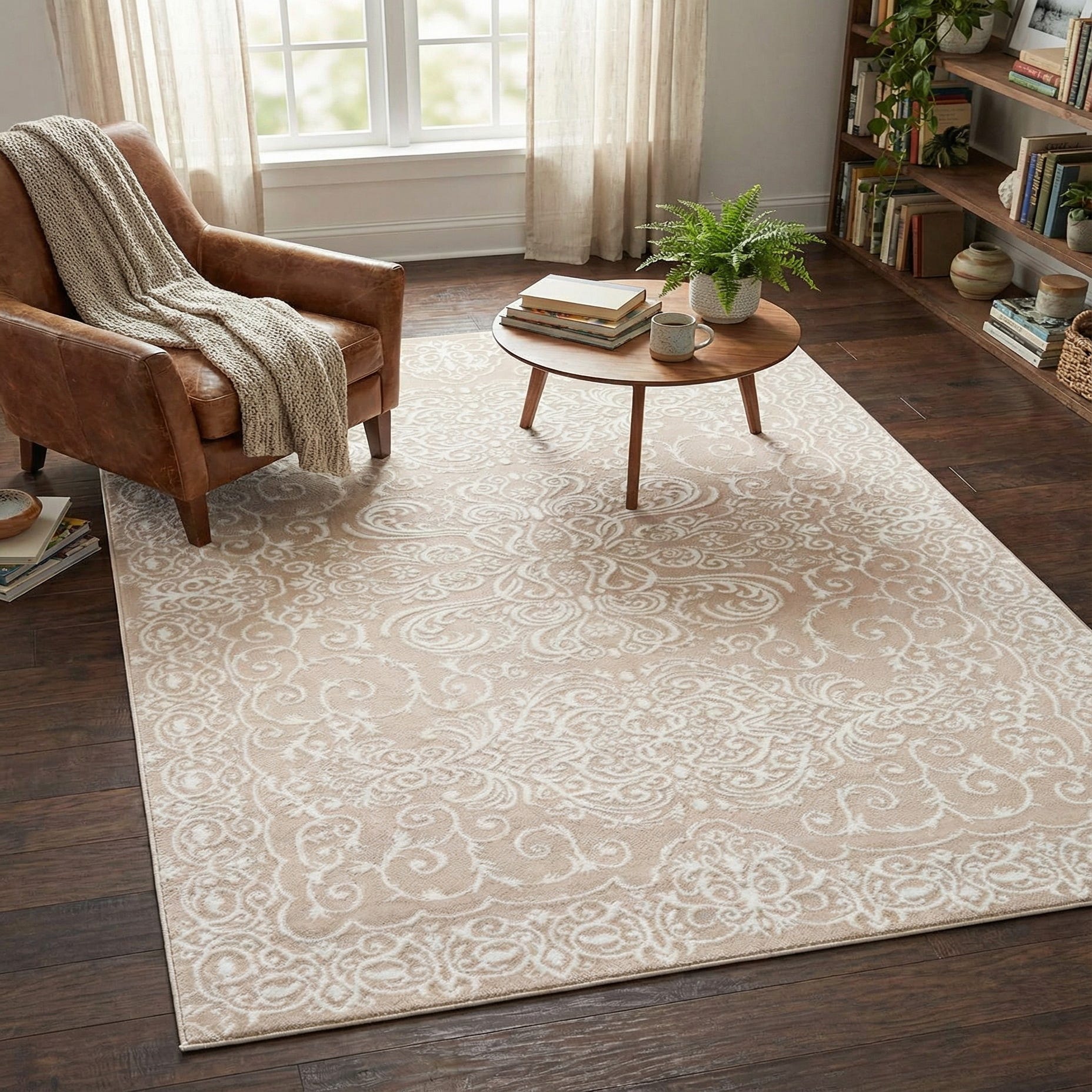Primary color is Beige. Colors in this rug include: Beige, Ivory.