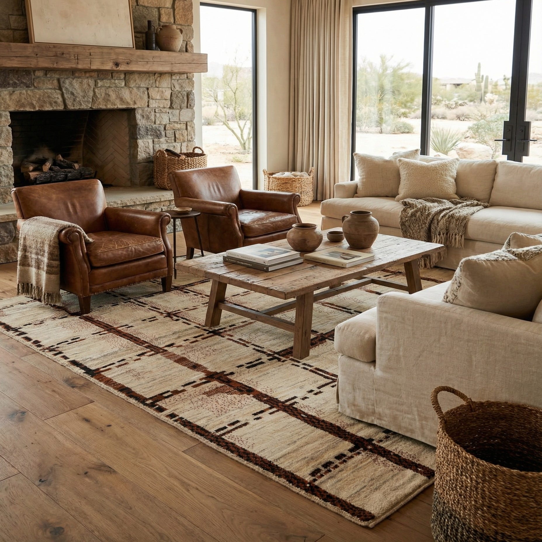 Primary color is Beige. Colors in this rug include: Beige, Language: en