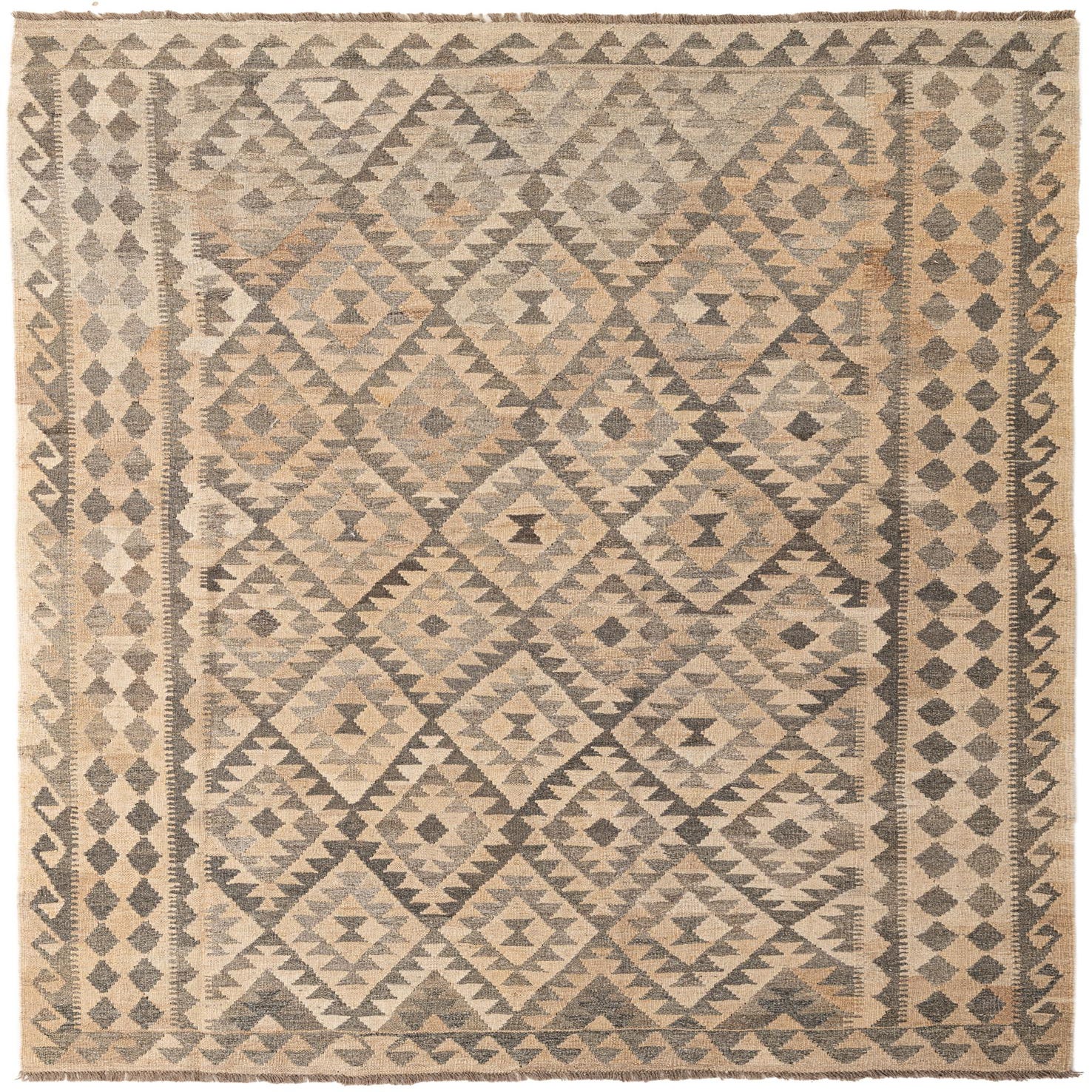 Primary color is Beige. Colors in this rug include: Beige, Brown, Gray.